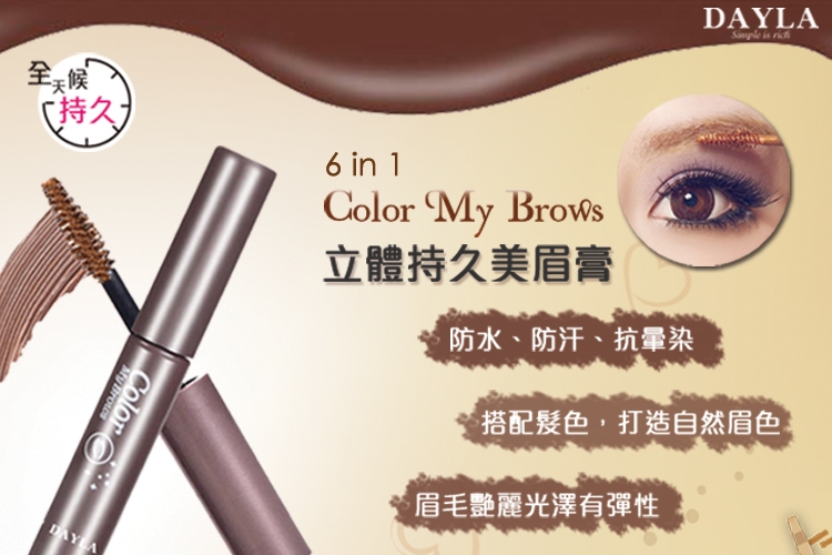 2.整理眉形後,由眉峰向眉尾塗抹再將多餘眉膏梳開