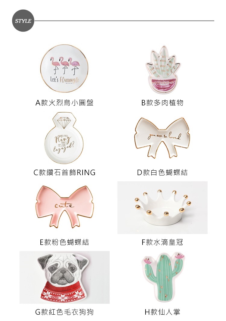 北歐時光 北歐風時尚描金創意造型可愛點心碟 首飾盤 (12款任選)