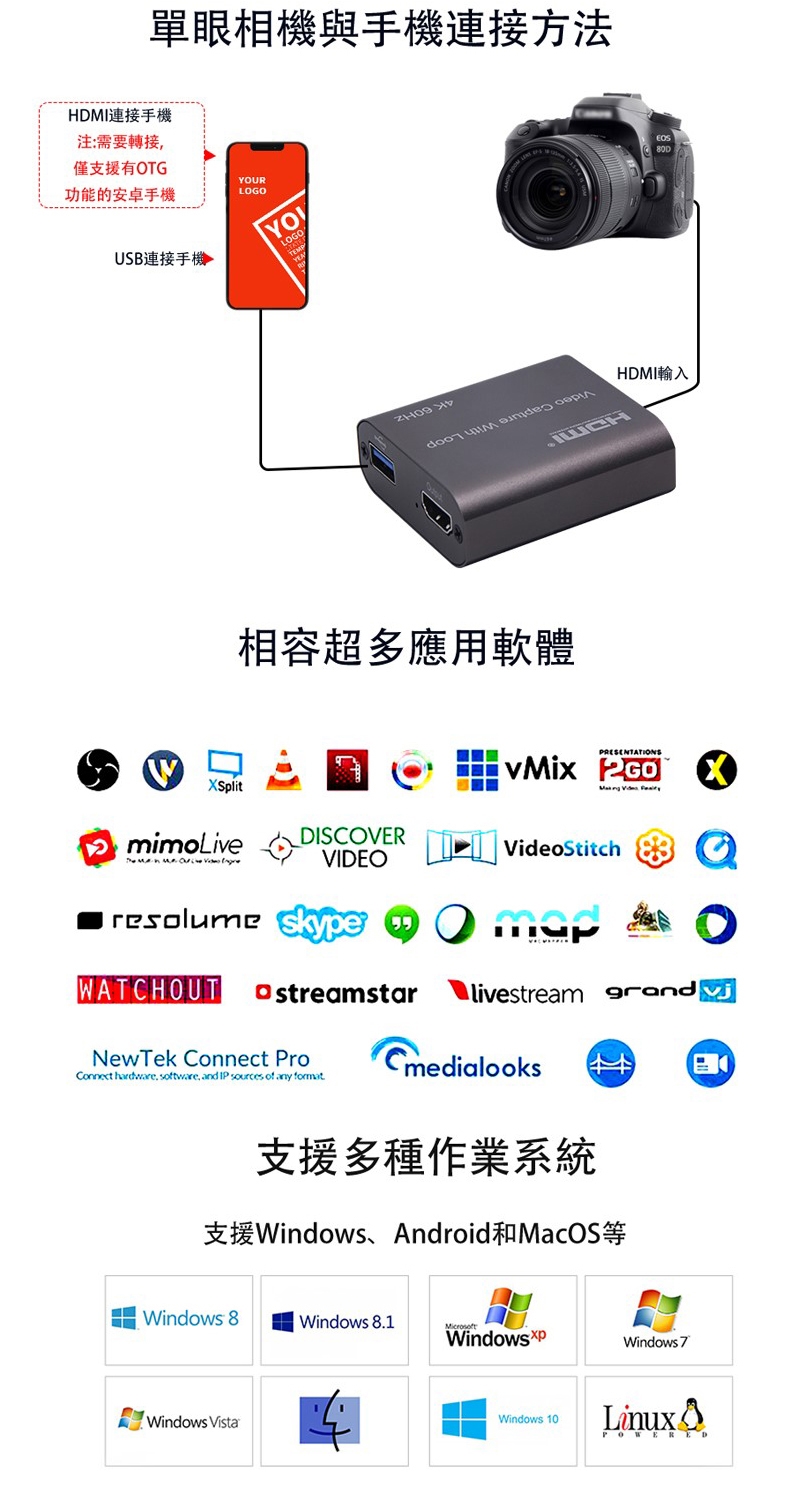 ◆支援市面大多數擷取軟體, 直播、教學、會議、遊戲等錄製超方便