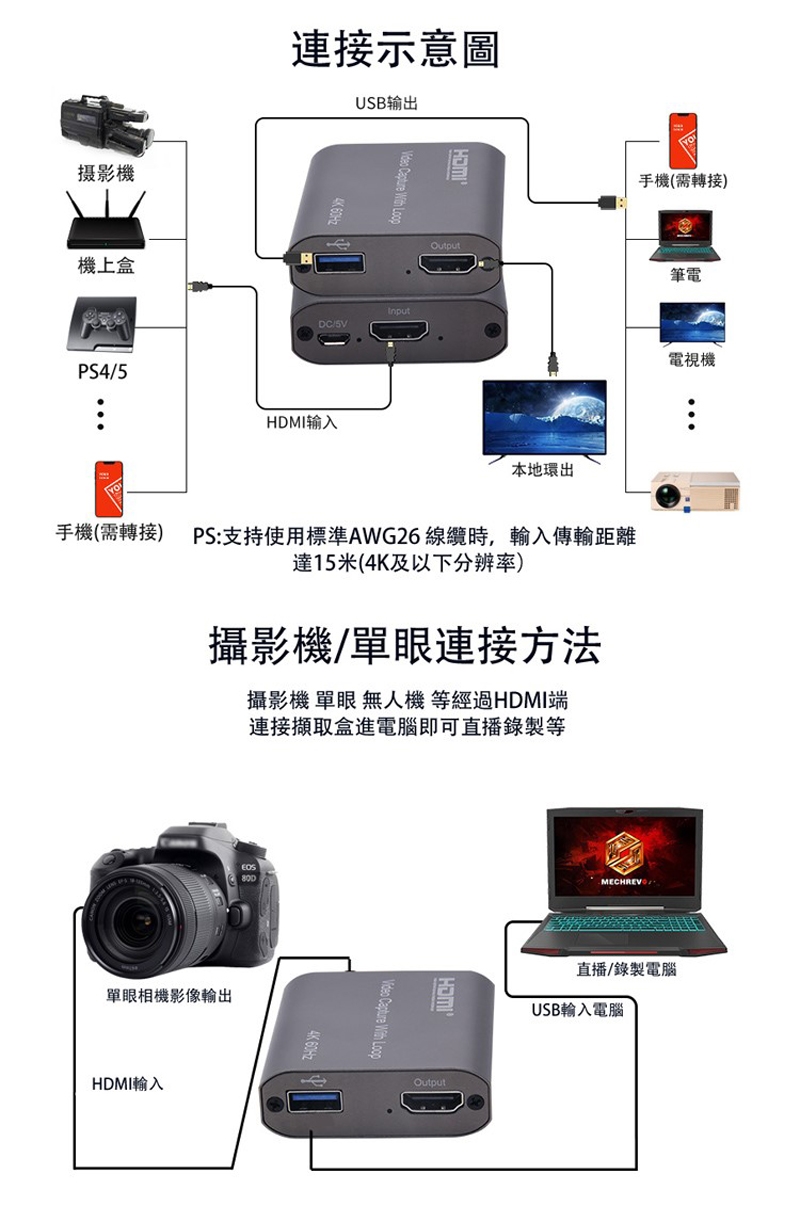 ◆可支援1組HDMI 4K 60FPS影音訊號輸出擷取功能