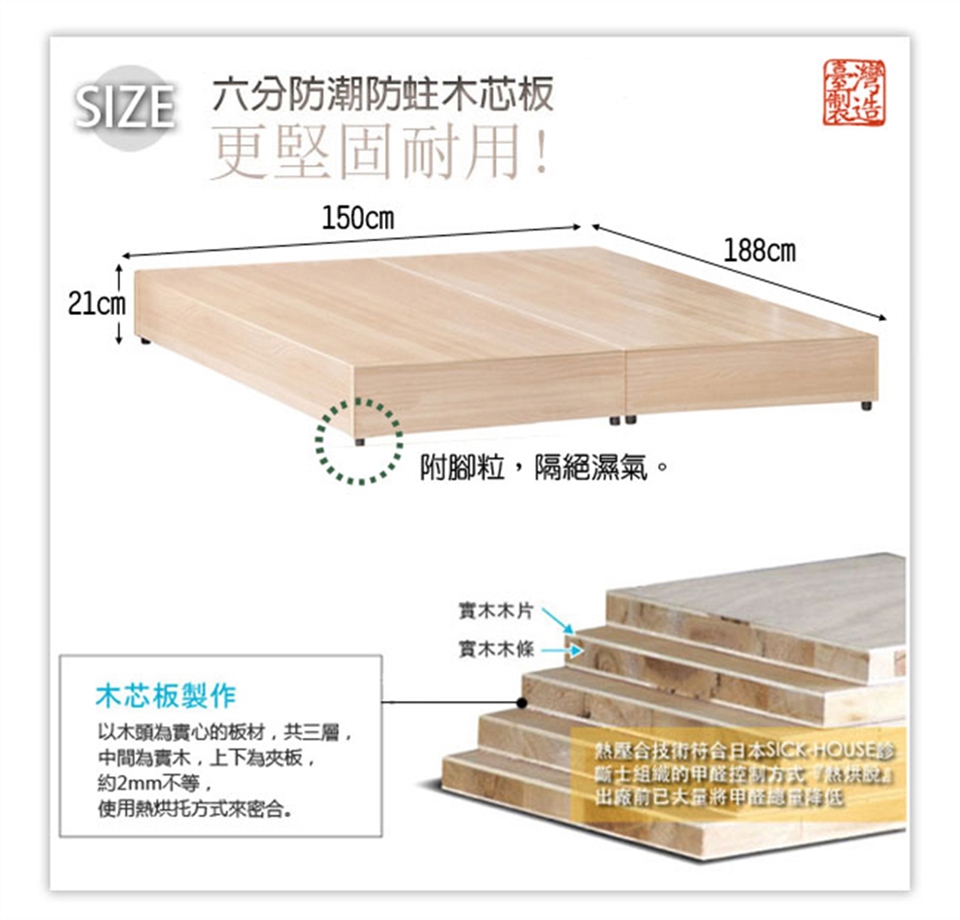 ◆ 5尺六分床底:寬150x長188x高21公分