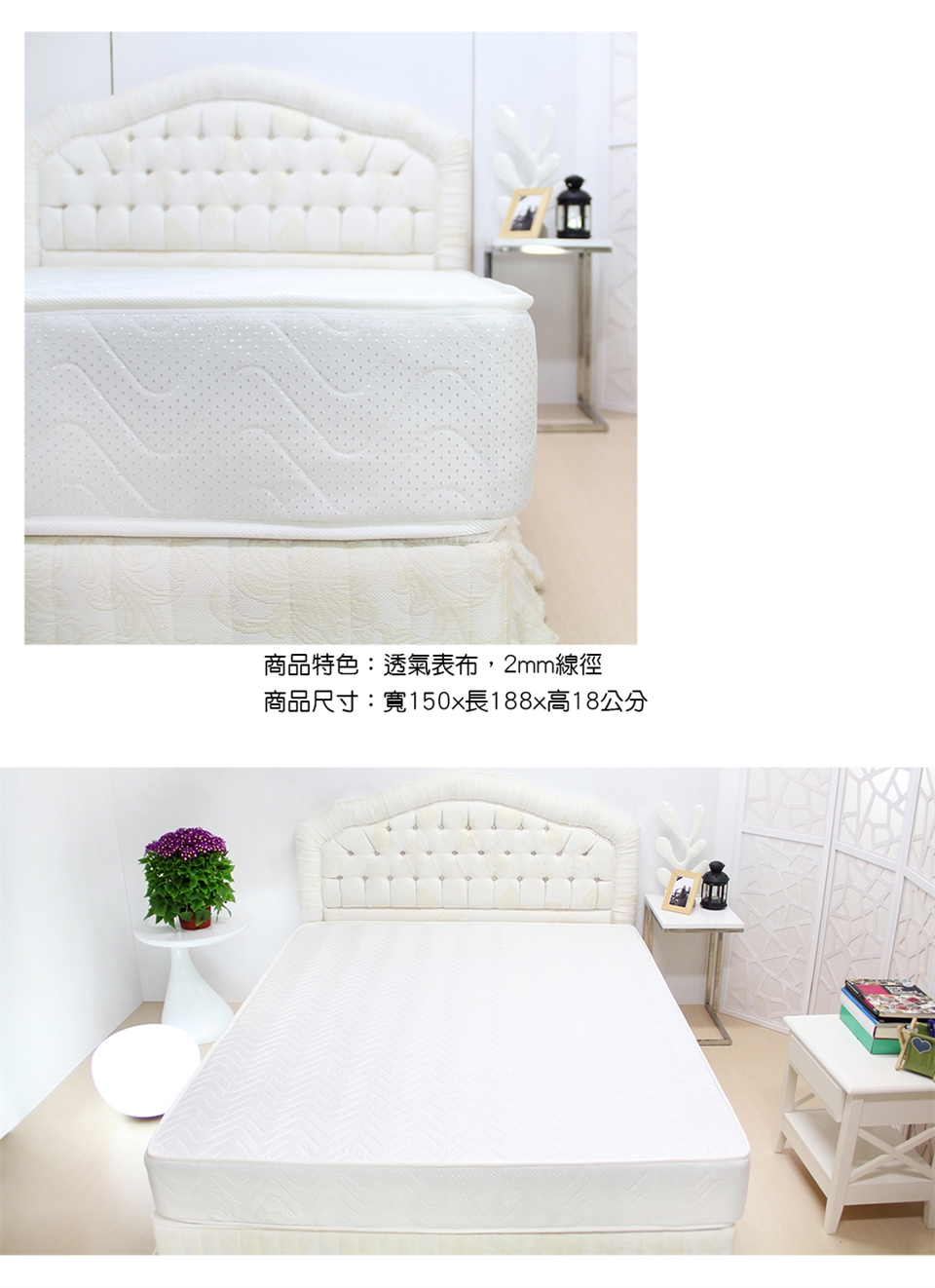 ◆ 5尺獨立筒床墊:寬150×深188×高20公分