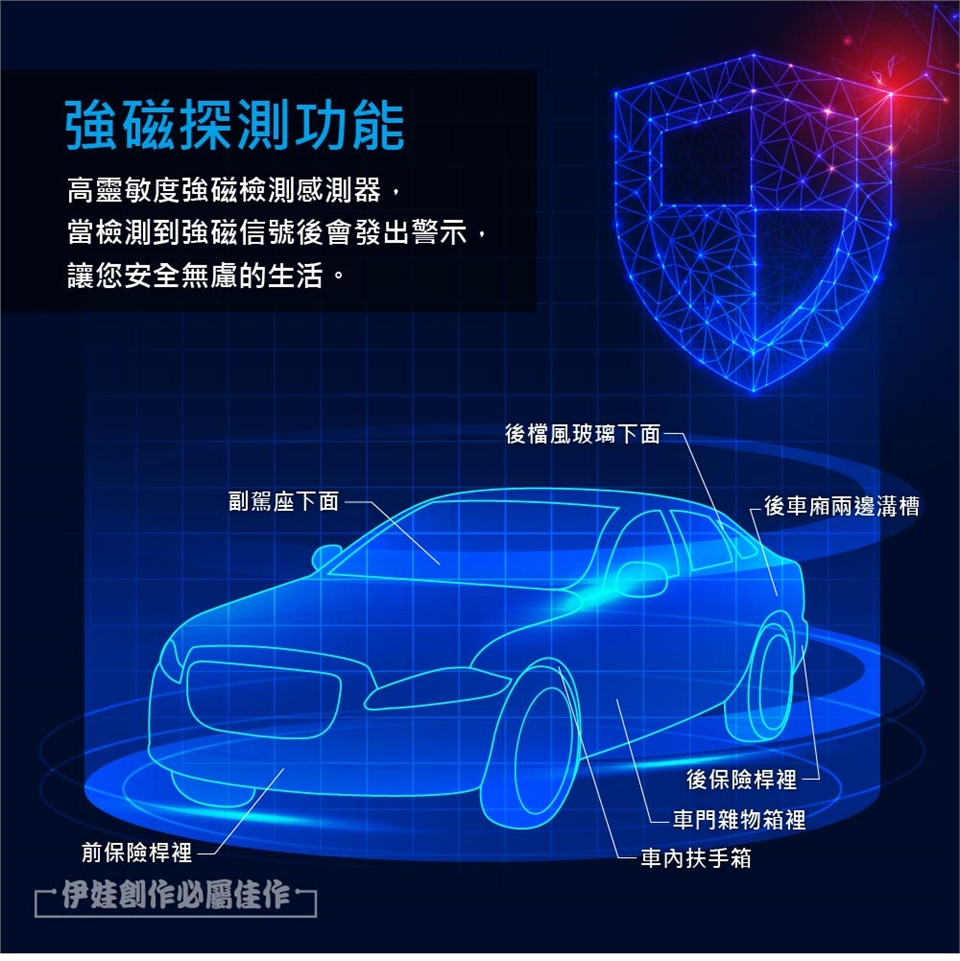 2. GPS定位器掃描-每日行程,不會被追蹤 => 透過強磁偵測, 找出吸附於車內的GPS定位設備或者監聽監控設備, 包含: 強磁探測-帶磁的竊聽器、定位器、密錄器 通通找得出來