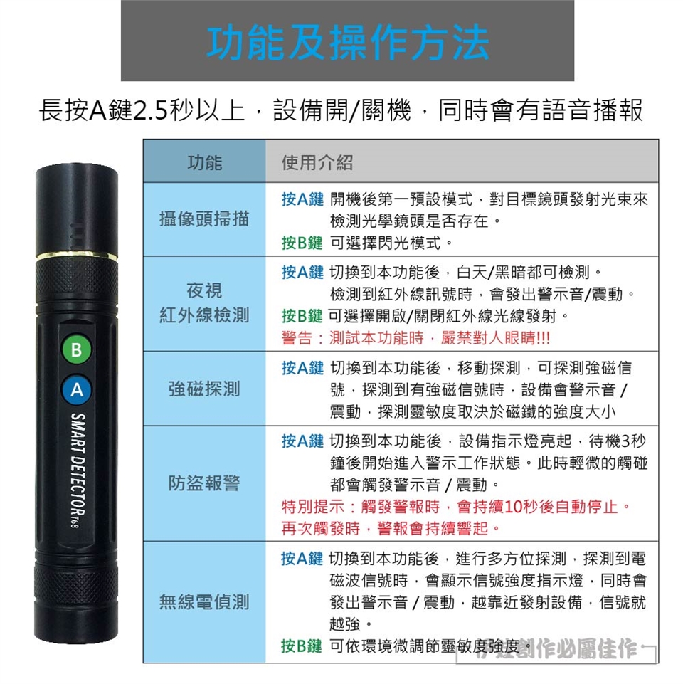 1. 紅外線探測-針孔攝影機、密錄器無所遁形 => 找出具備紅外線夜視功能的偷拍設備
