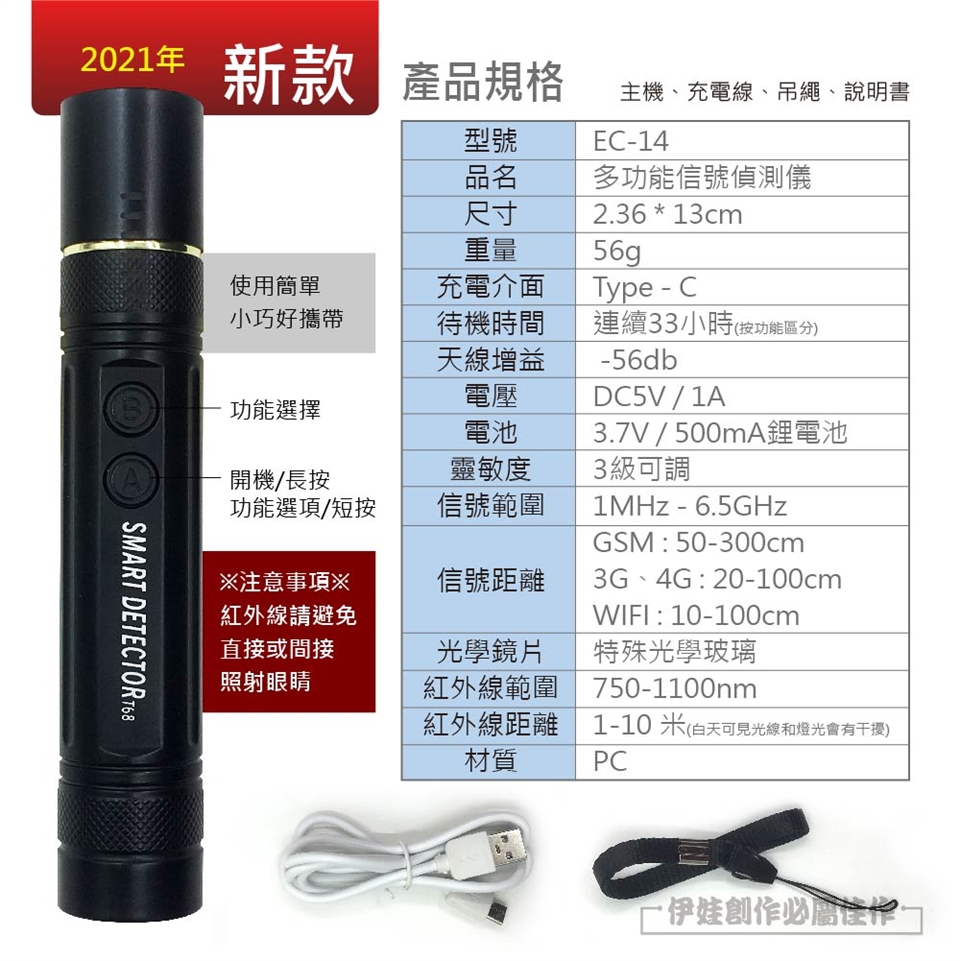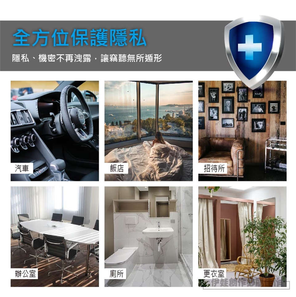 ☆偵測範圍小至更衣室、大至飯店房間,更準確的找出隱藏的攝影機