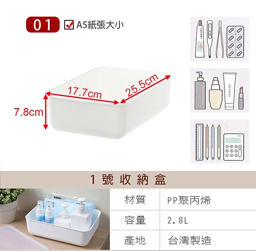 ■1號為A5紙張大小,可收納保養品、小物作收納。