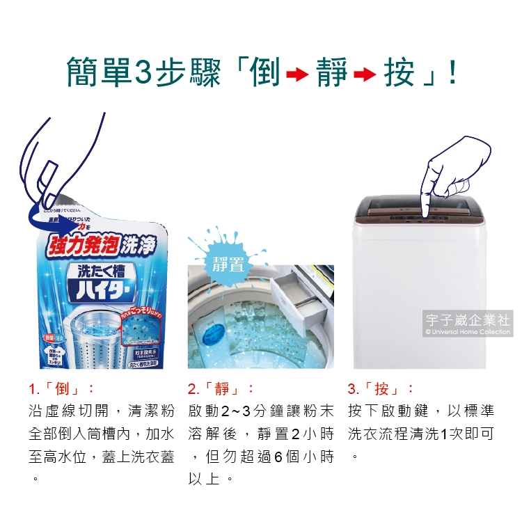 (2)使用本商品時不可同時清洗衣物,以免造成衣物褪色。