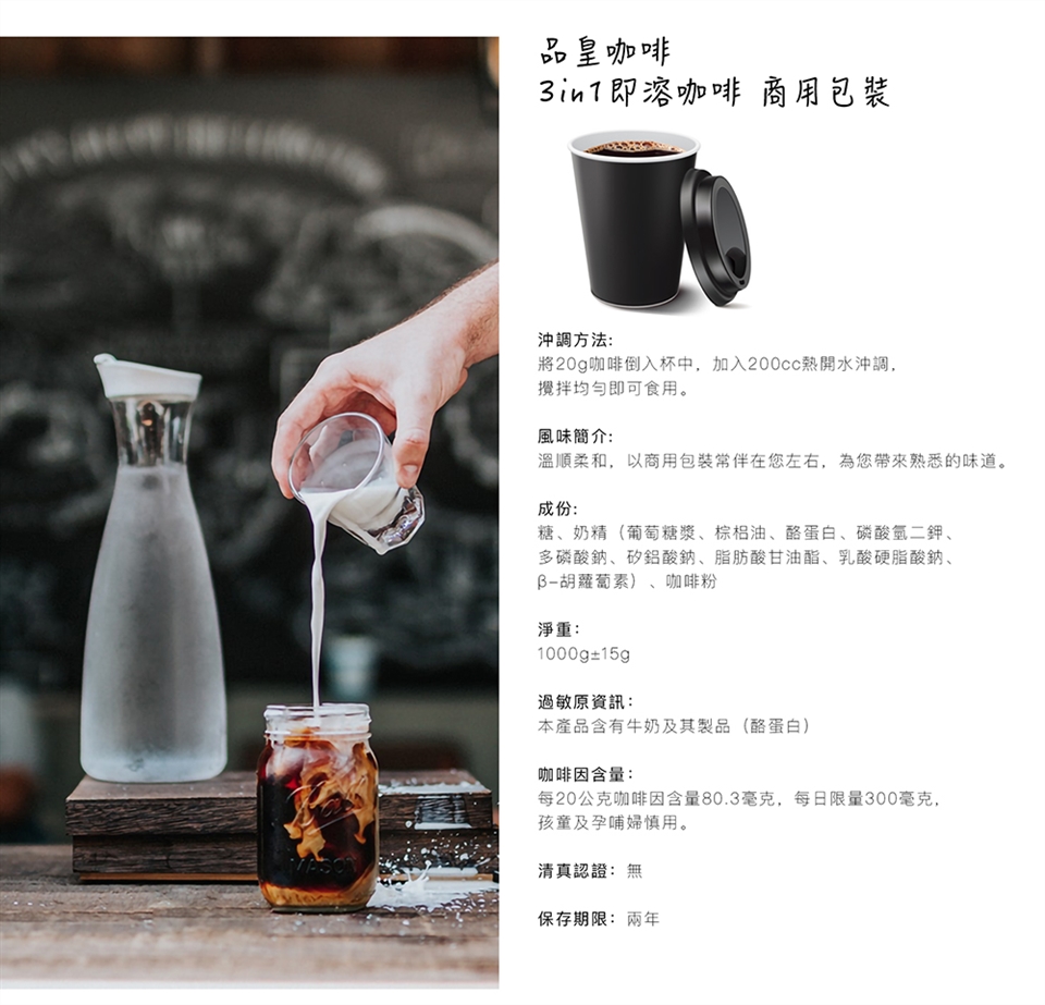 每20公克咖啡因含量80.3毫克,每日限量300毫克,孩童及孕哺婦慎用。