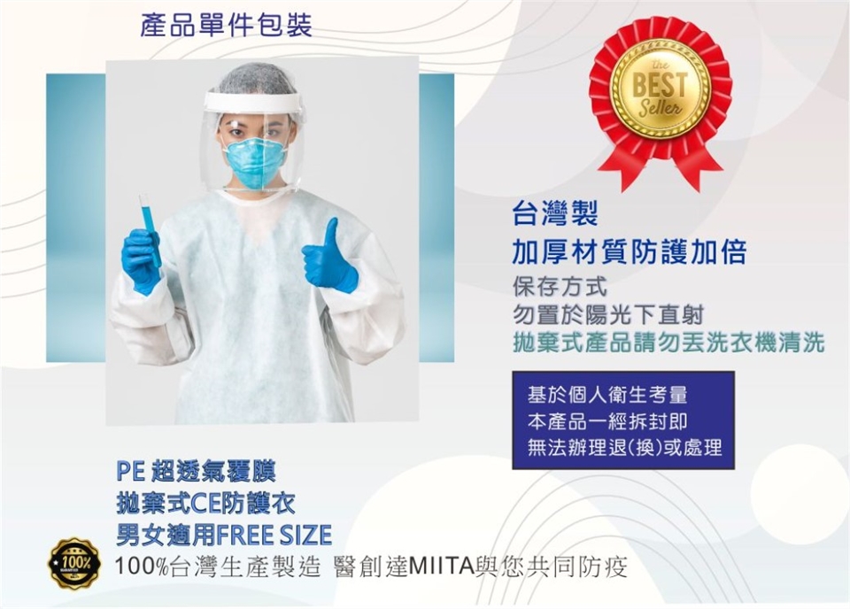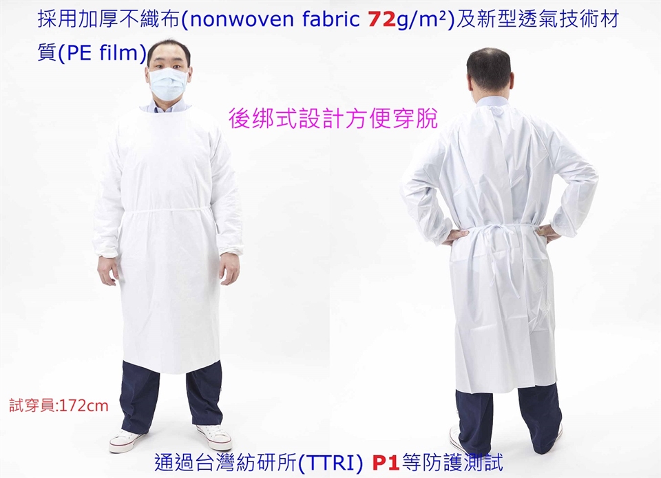 *拋棄式防護隔離衣。