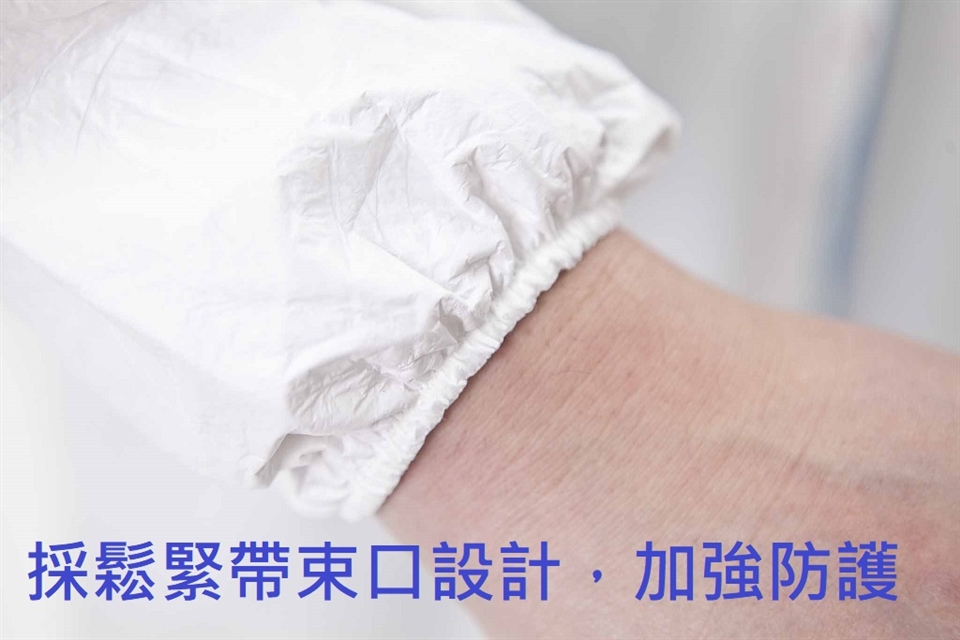 *反穿式設計,袖口鬆緊帶束口與腰圍綁帶,便利穿脫與行動作業,可達基本的保護功能。