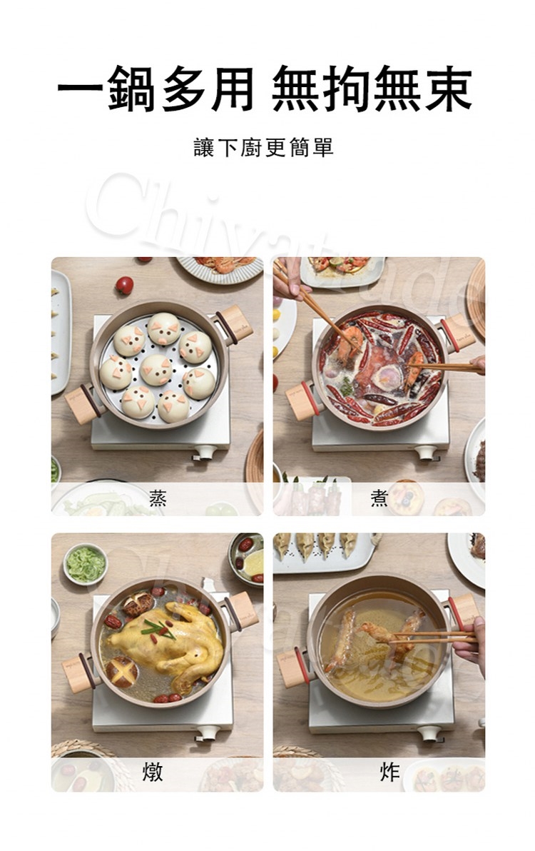 ※不建議經常烹飪貝殼類食物/帶骨頭的食物(長期烹飪堅硬食物會劃傷鍋子影響不沾效果和使用壽命)