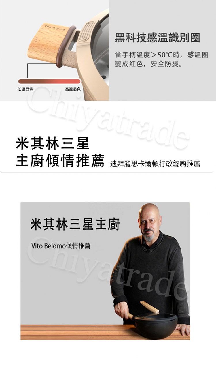 ※感應膠圈為手把所反饋的溫度做為防燙手提示,不等於鍋底溫度,請勿空燒或大火。