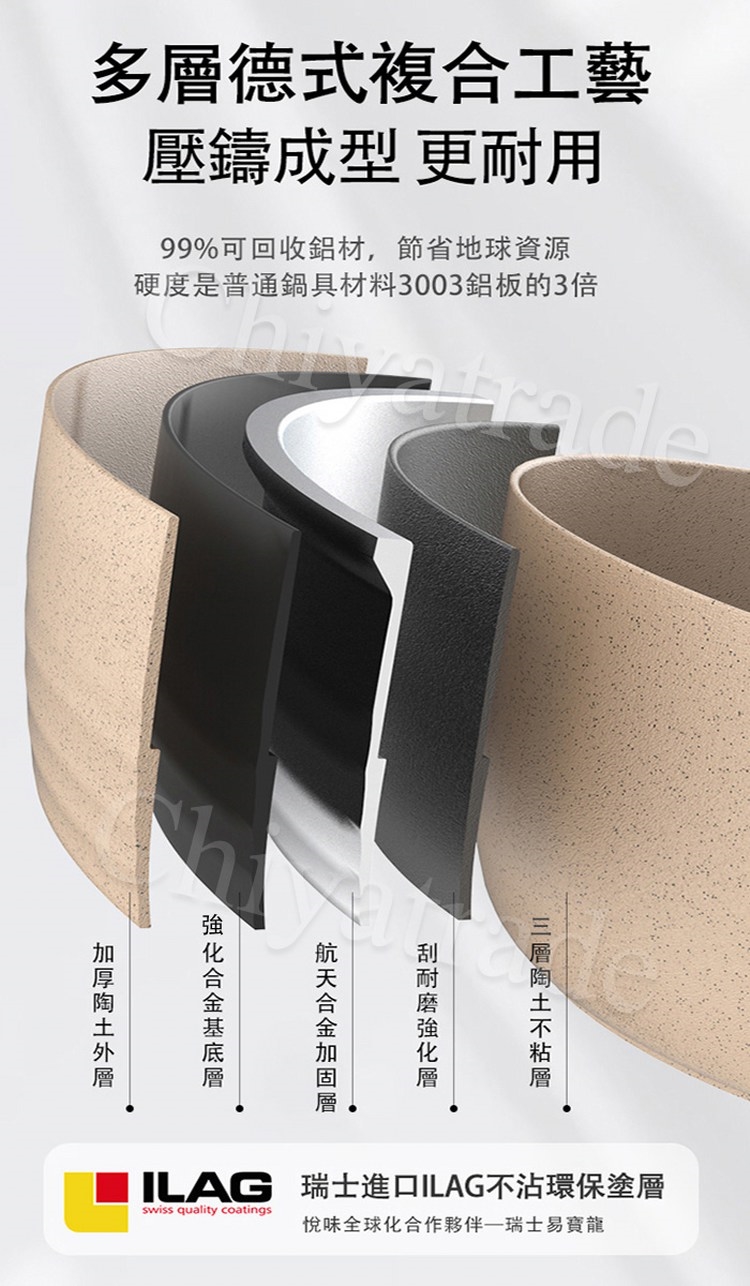 表面處理:瑞士陶土科技ILAG強化不沾層