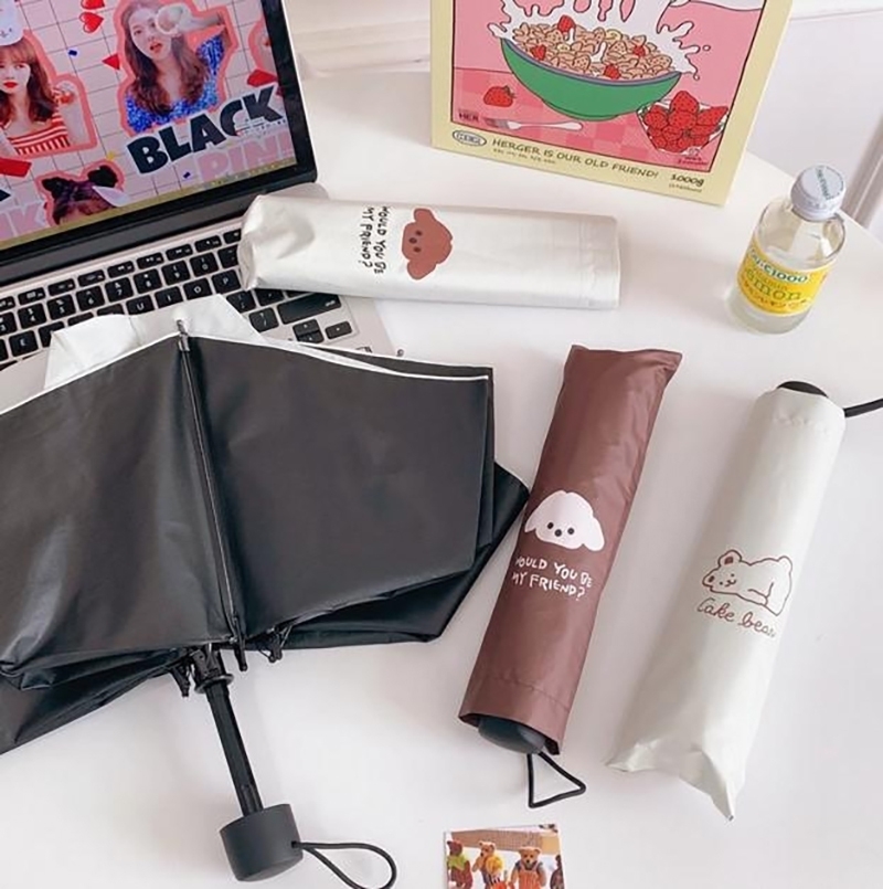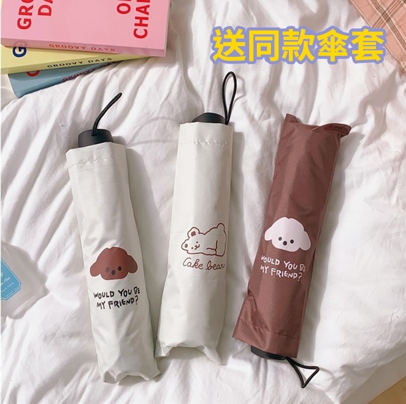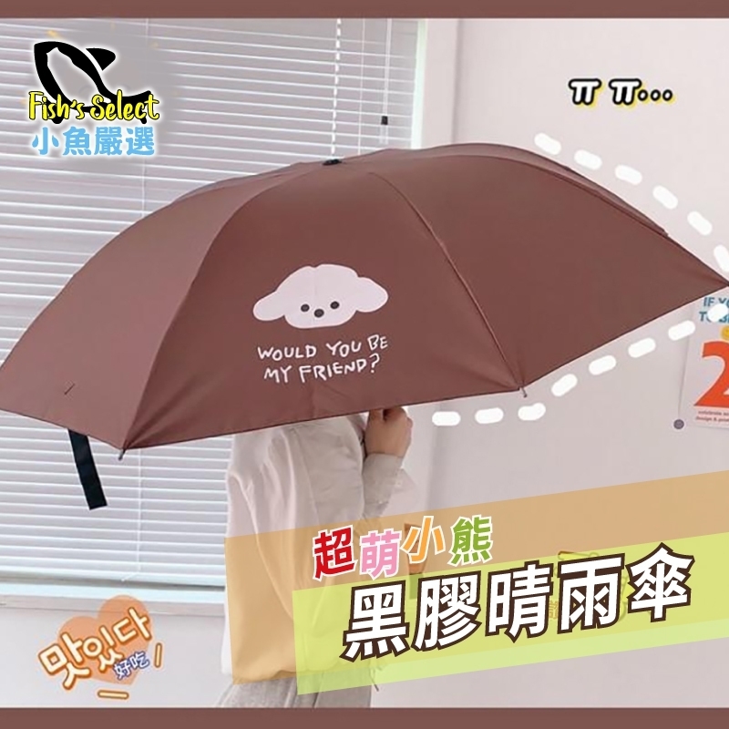 小魚嚴選 日系超萌小熊8K黑膠晴雨傘