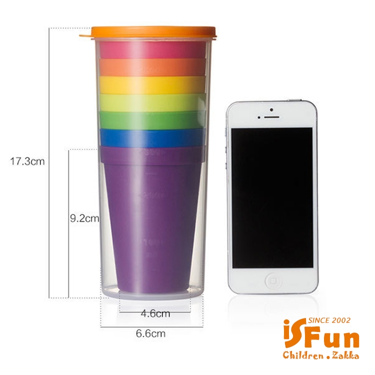 彩色造型的七件套組杯,可當做一般水杯、漱口杯、兒童杯、飲品杯等,
