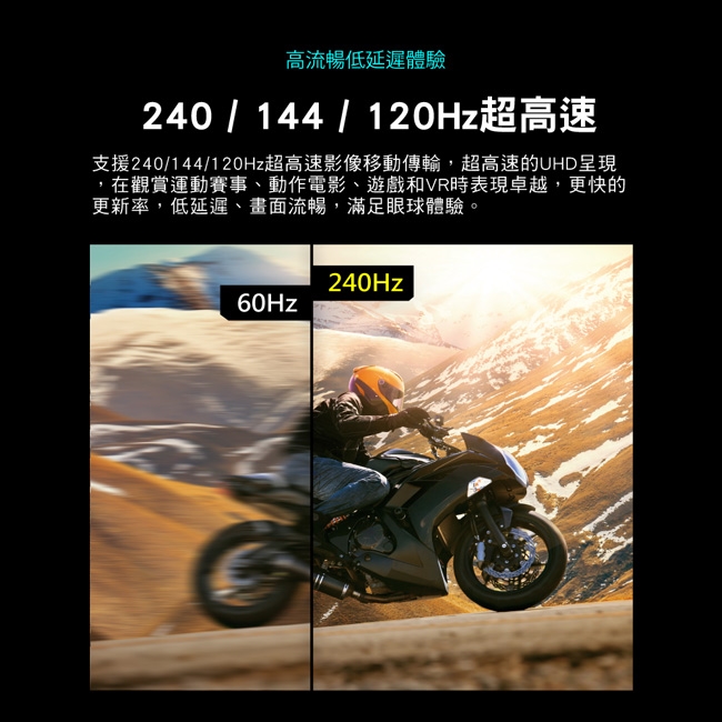 ◎超高流暢支援240Hz / 144 Hz (4K@240Hz max.)