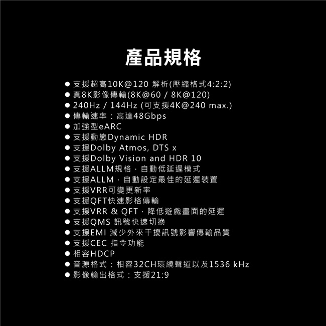 ◎ATC認證通過,完全符合協會HDMI 2.1版設計規範
