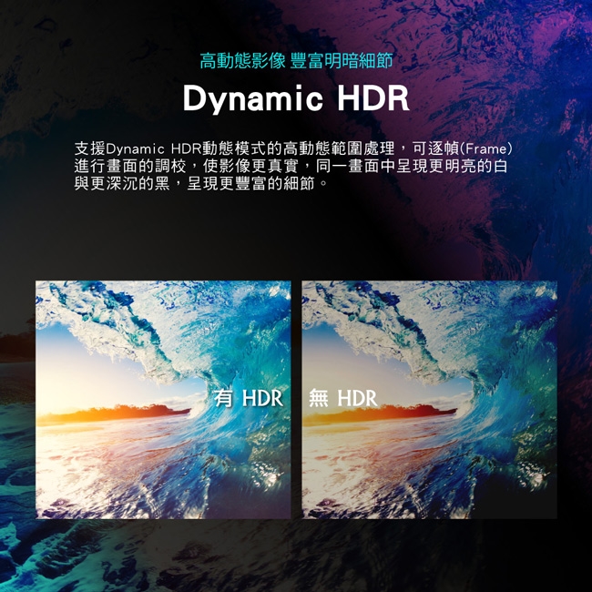 ◎環節清楚呈現Dynamic HDR,逐格畫面動態強化影像格式