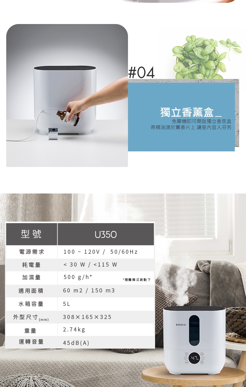 瑞士 BONECO-冷/暖奈米超潤加濕香氛機U350