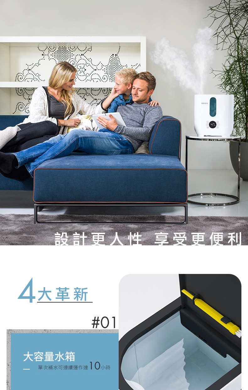 大家只知道濕度過高時需使用除濕機,卻不知太乾燥的空氣對人體影響更大,尤其容易誘發呼吸系統方面的疾病。家裡若有小朋友老人家因空氣乾燥而引發喉嚨乾癢咳嗽者,亦可使用加濕器,效果非常顯著。