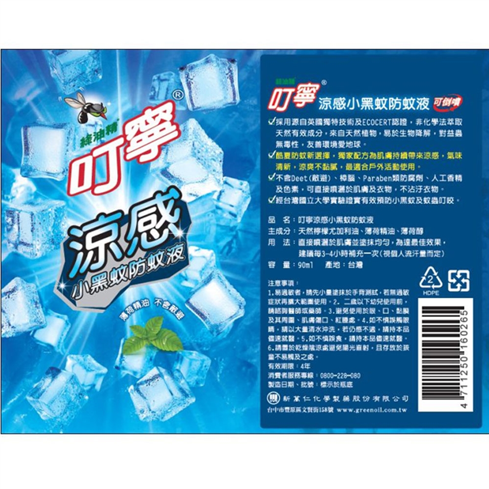 叮寧 涼感小黑蚊防蚊液 90ml/瓶