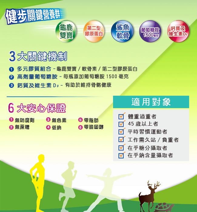 ◆ 添加葡萄糖胺、鯊魚軟骨、第二型膠原蛋白、鈣及遵循古法熬製的龜鹿雙寶