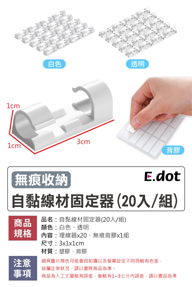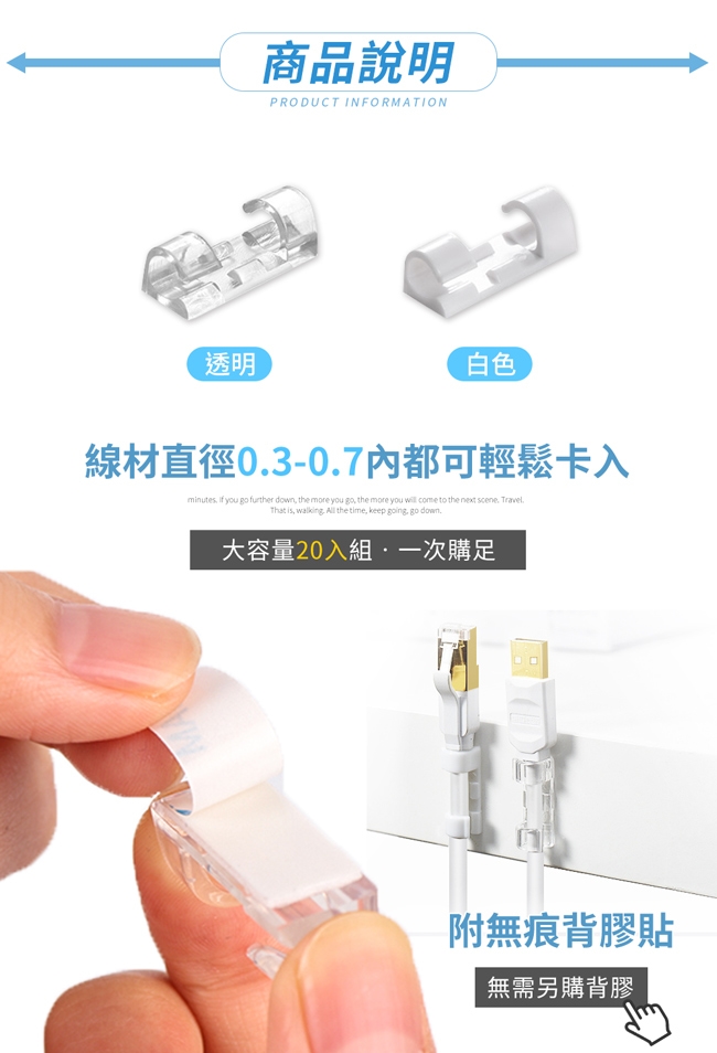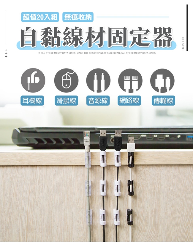 ◆ 商品名稱:自黏線材固定器(20入/組)