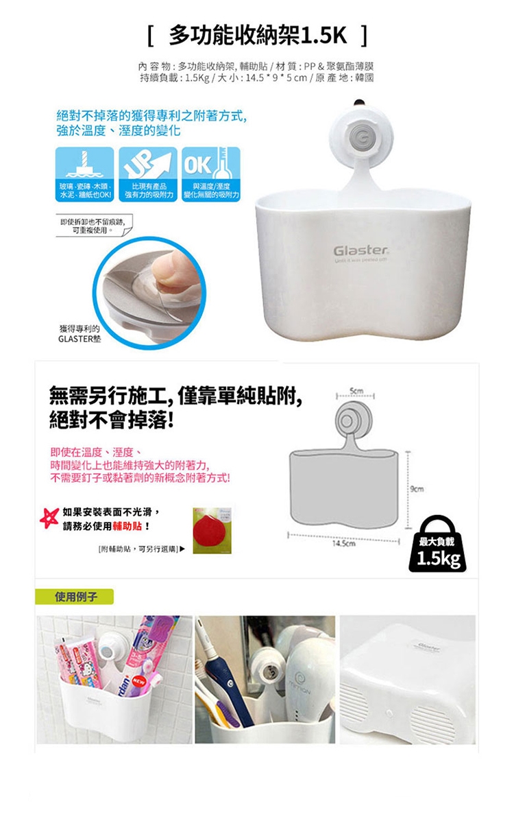 商品品名:【Glaster】韓國無痕氣密式多功能收納架1.5kg