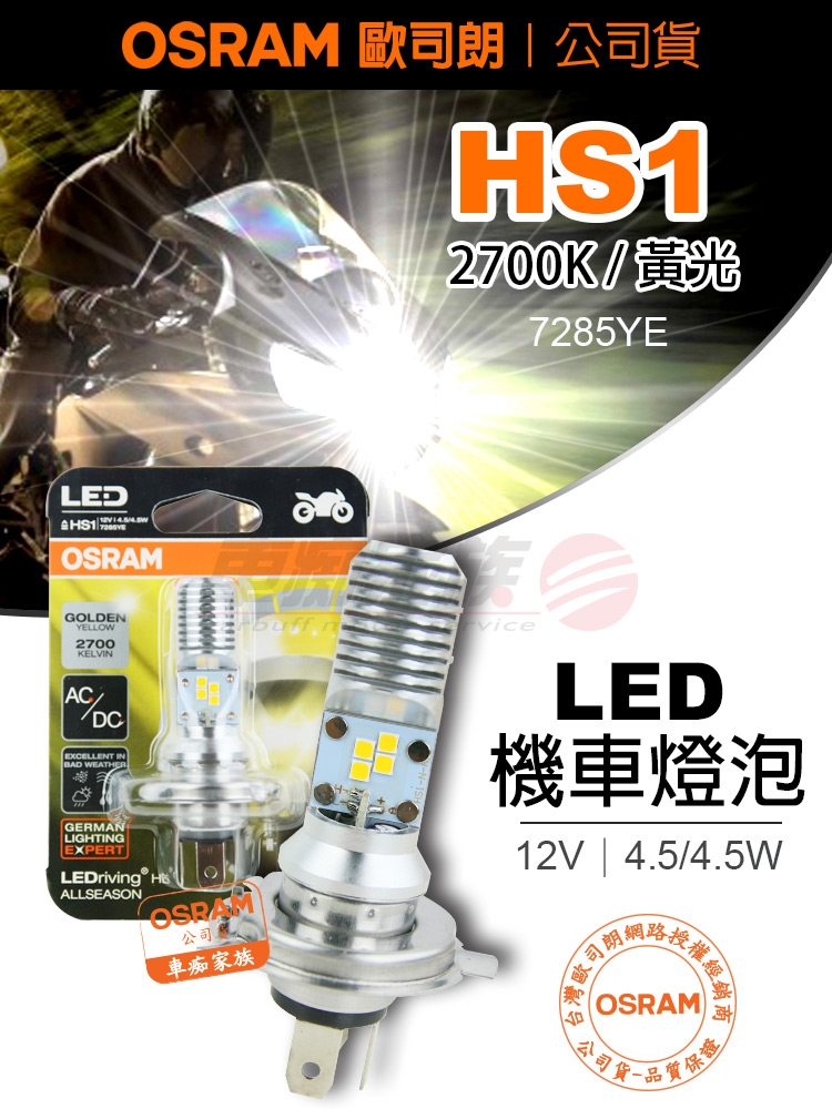 品名:OSRAM 機車LED燈泡 黃光/2700K HS1 12V/4.5/4.5W 公司貨