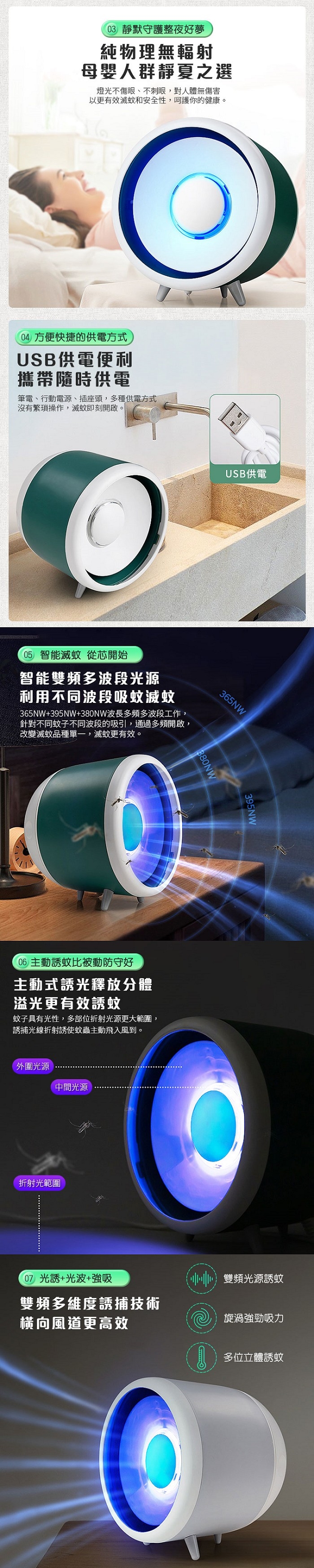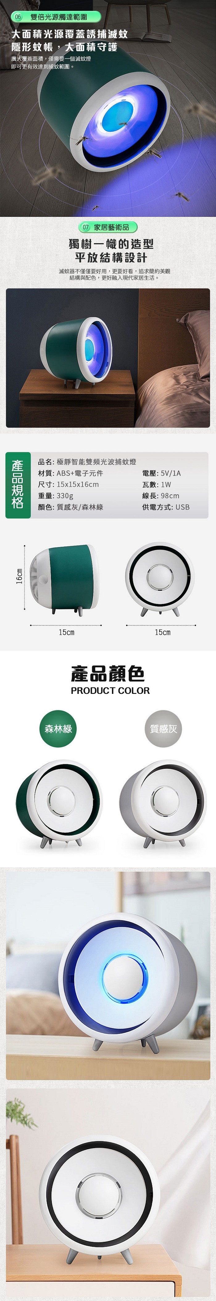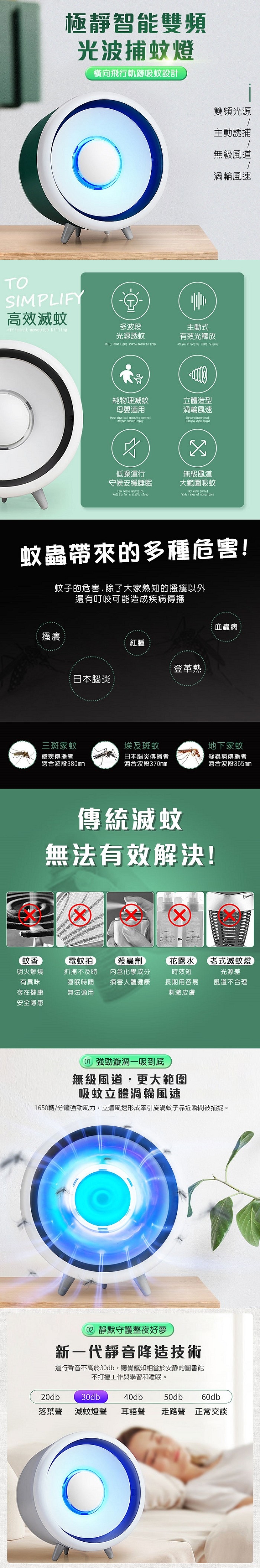 品名:0輻射極靜智能雙頻光波捕蚊燈
