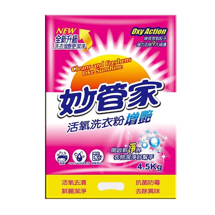 ◆ 特有OXYCLEAN活氧彩漂配方,強效超白配方,油性汙垢去污更容易,白衣亮白,彩衣鮮麗