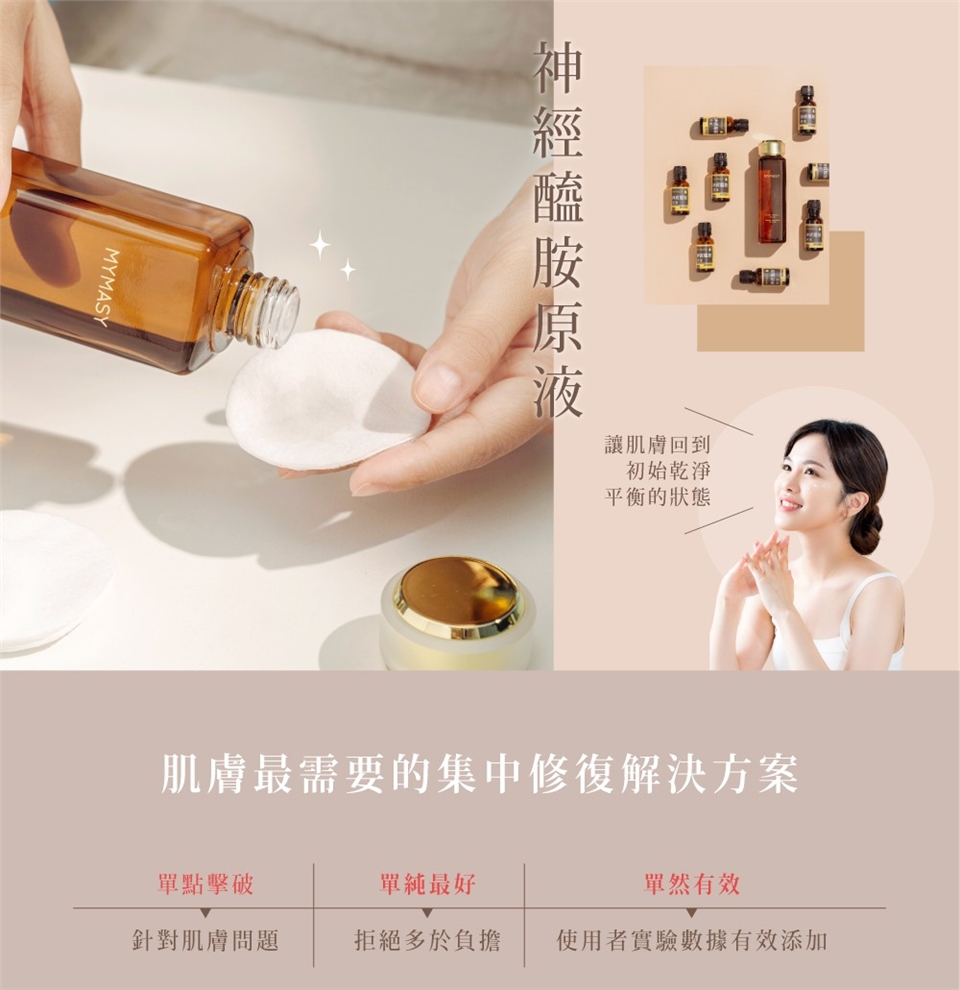 MYMASY肌元保養原液系列,給肌膚必要的集中修護。