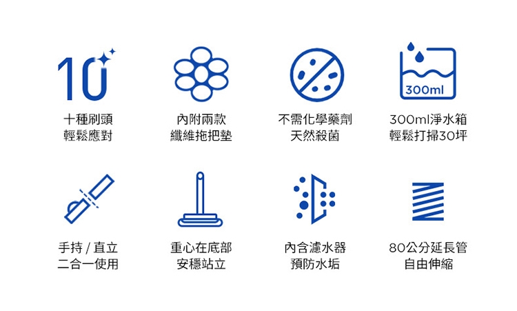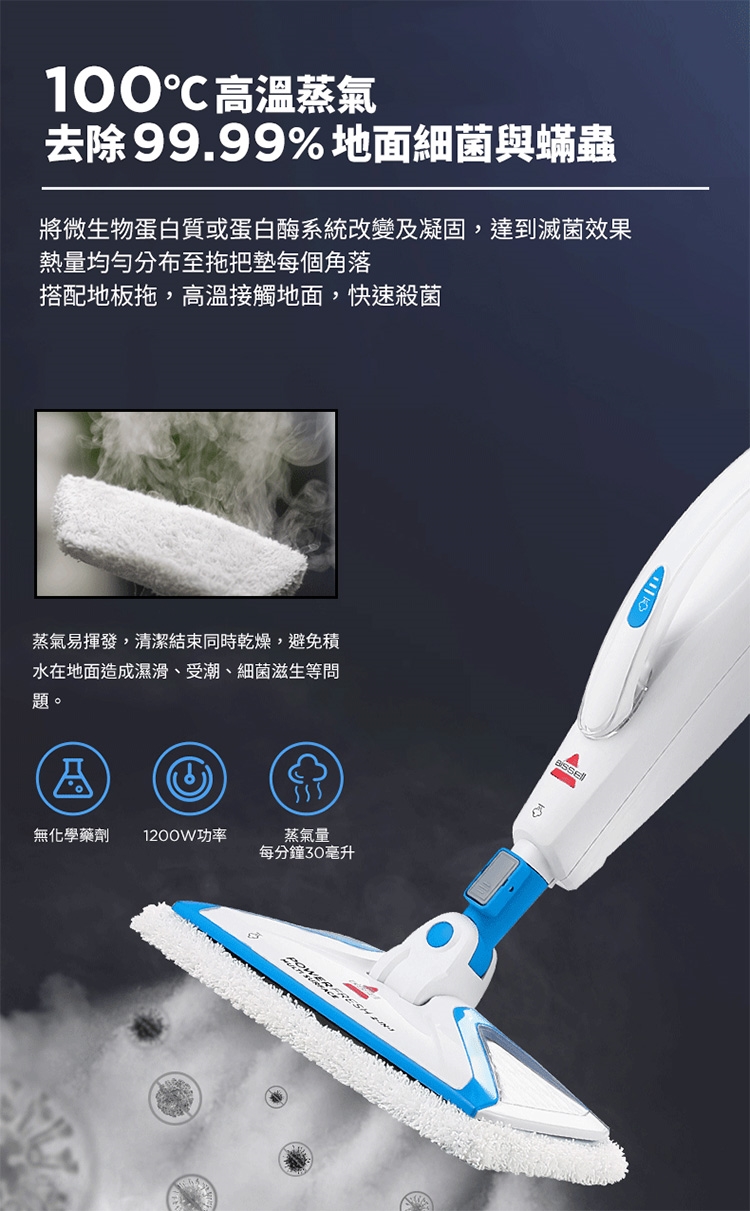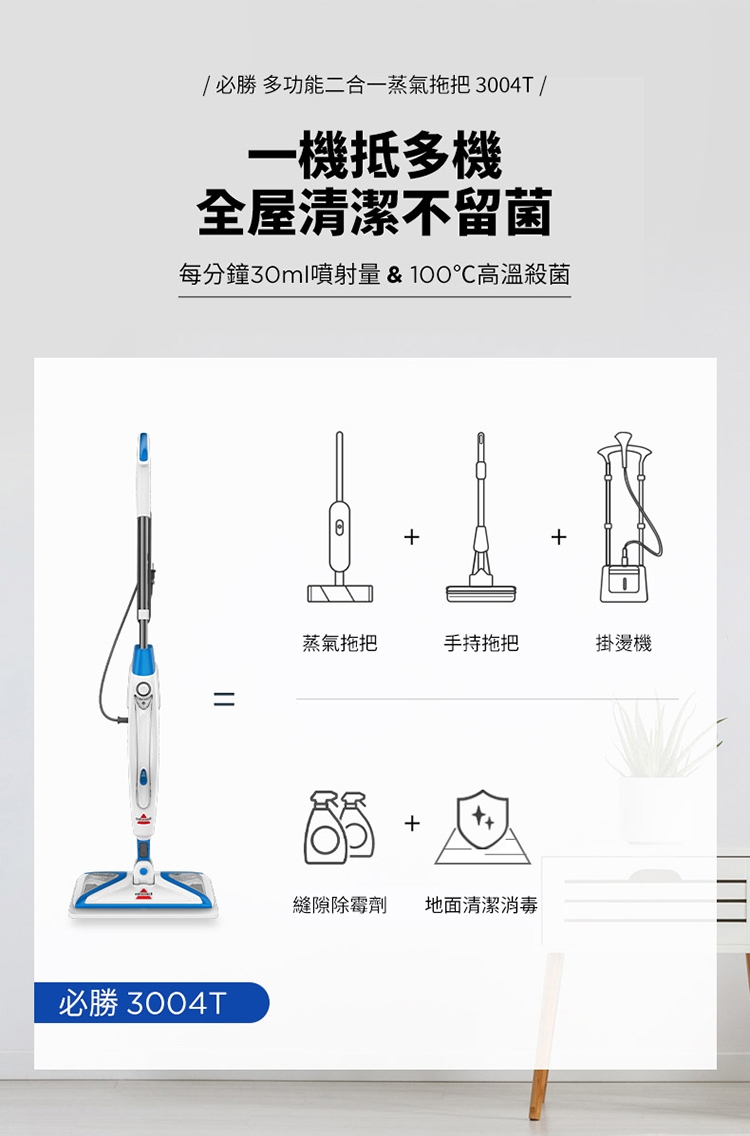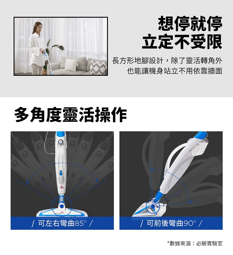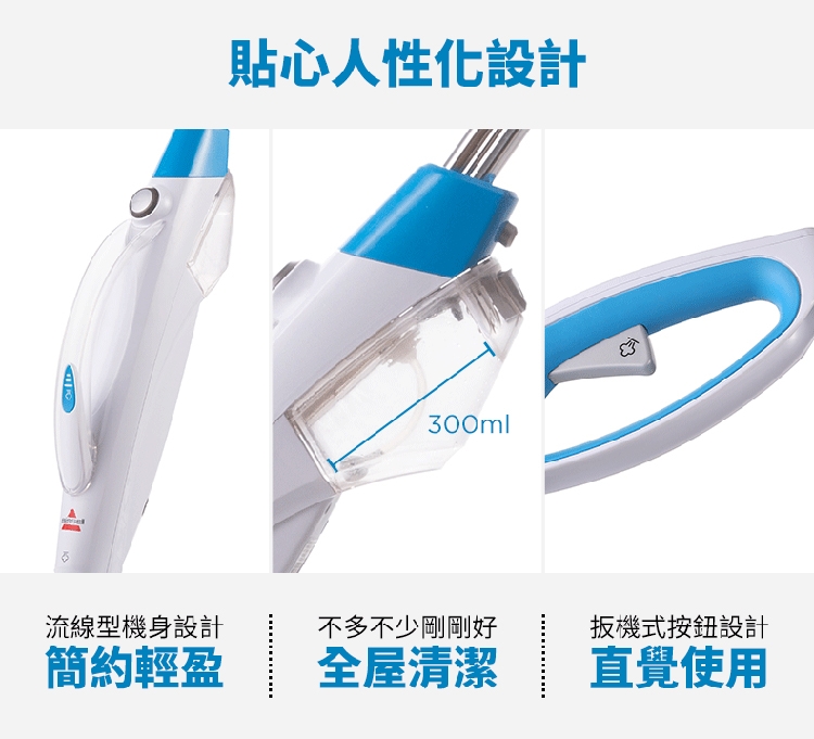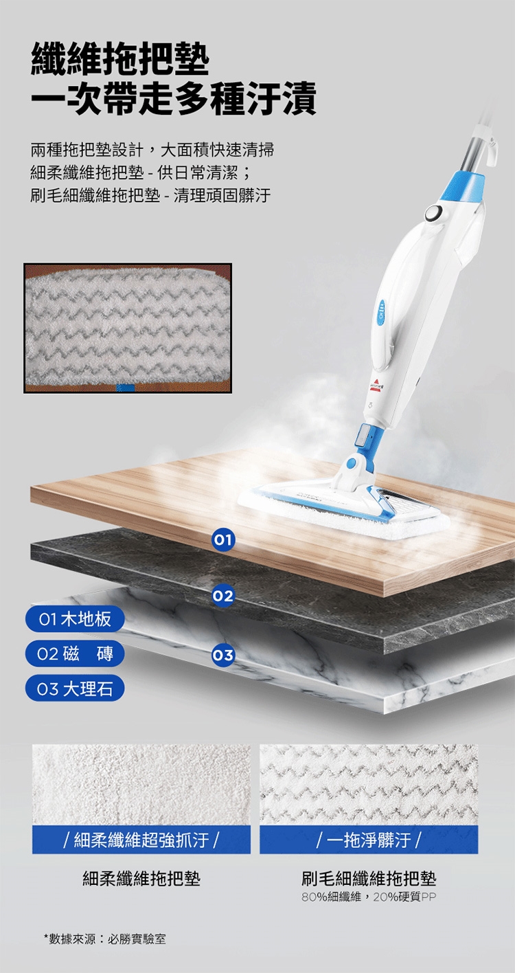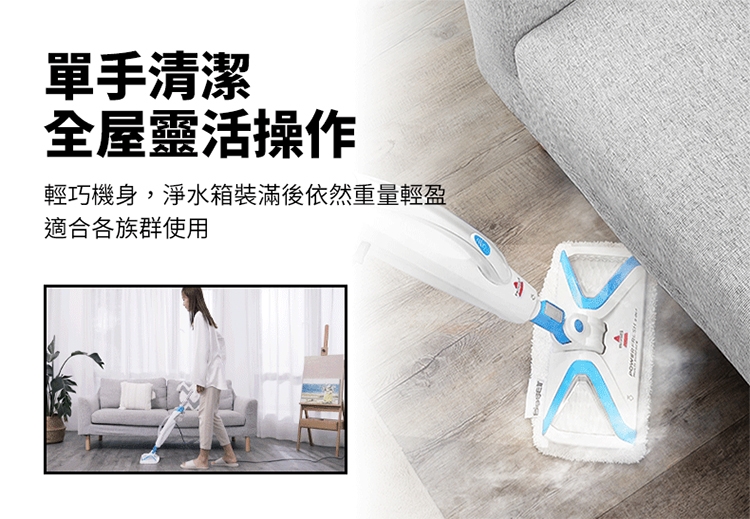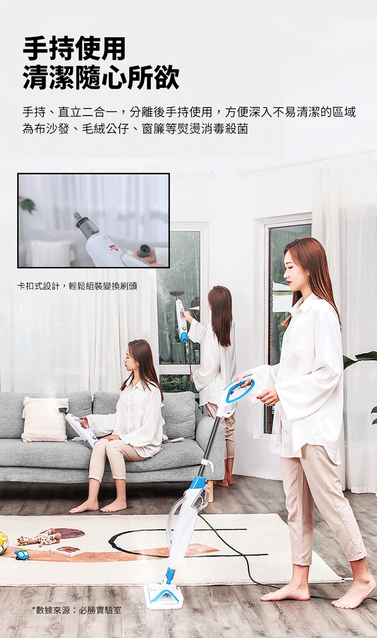 ※ 注意:蒸氣清潔用品不建議使用在海島型地板和實木地板上,因為可能會造成些許清潔痕跡,使用前請於不顯眼處先做測試評估是否適用,謝謝。