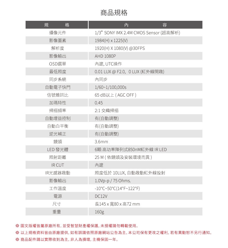 2. 本商品主機保固一年,配件保固三個月。