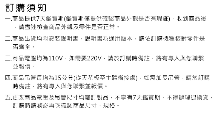 ★務必請消費者於下單前確認家中原有燈飾的尺寸及適用型號及電壓,以免造成錯誤下單。