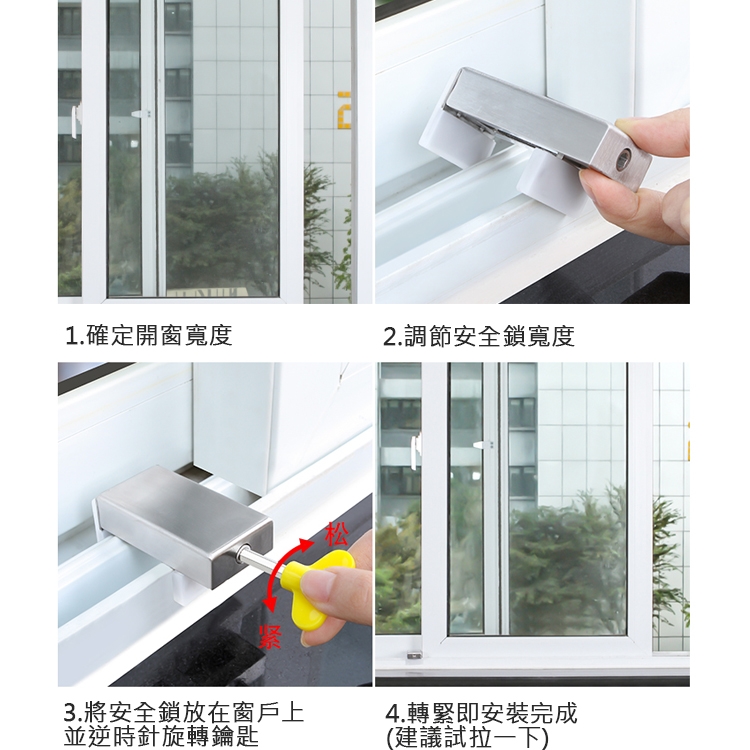 針對兒童所推出的居家安全用品,防止隨意開窗造成意外,可固定窗戶不易推開,