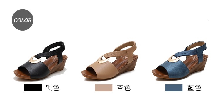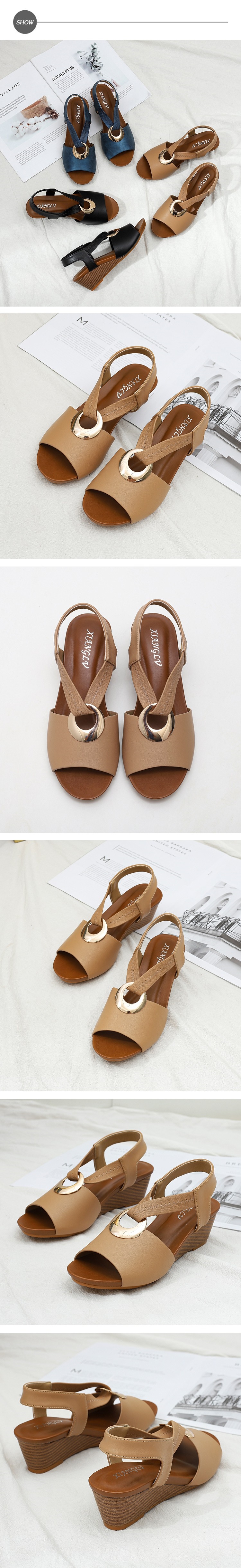 【QUEENA】 坡跟涼鞋羅馬涼鞋/復古典雅金屬圓釦造型坡跟羅馬涼鞋 杏