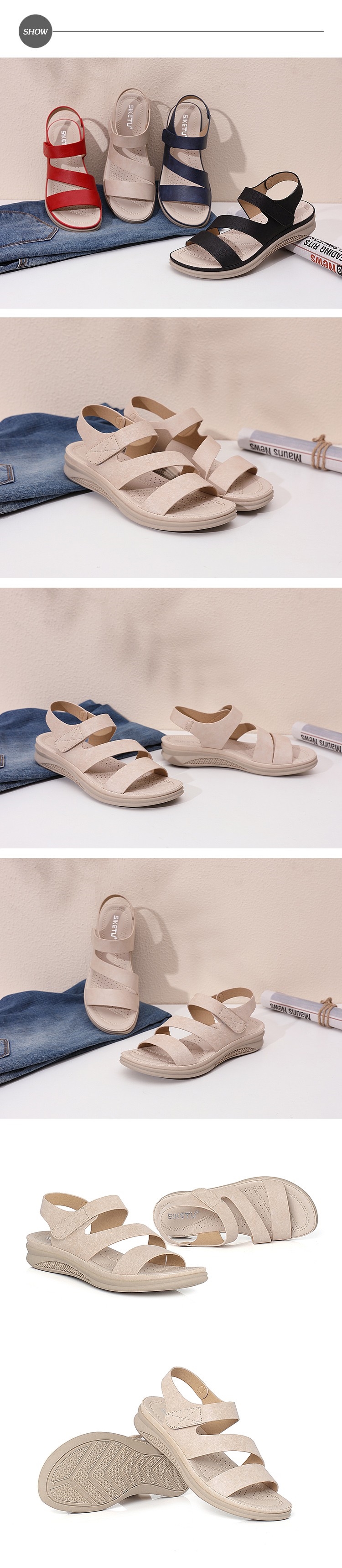 【QUEENA】 魔鬼粘涼鞋厚底涼鞋/復古純色簡約休閒厚底涼鞋 杏