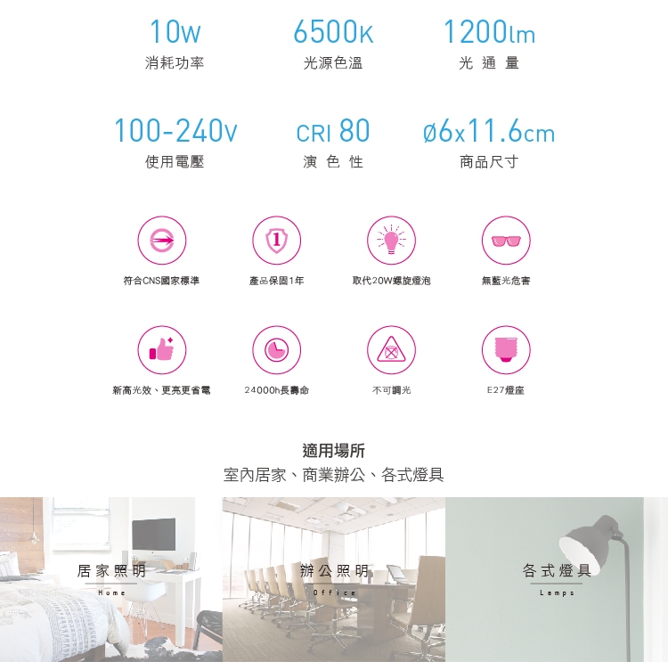 超亮、高光效,耗電量僅須傳統燈泡1/10。