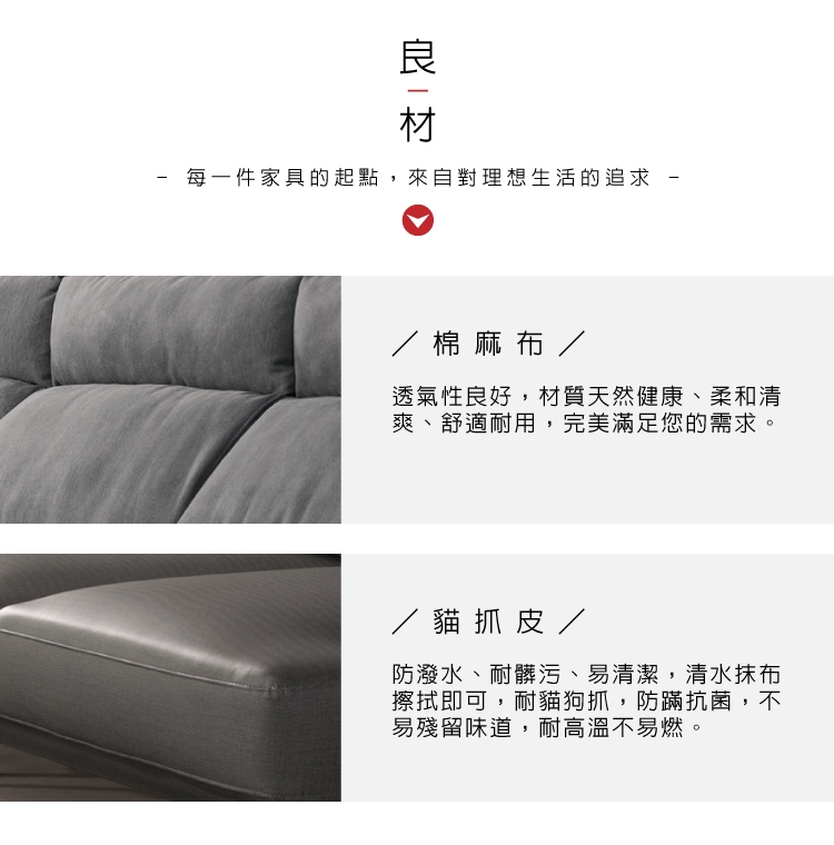 背靠採用高級棉麻布與貓抓皮椅身完美搭配,觸感細緻柔順又極具質感!