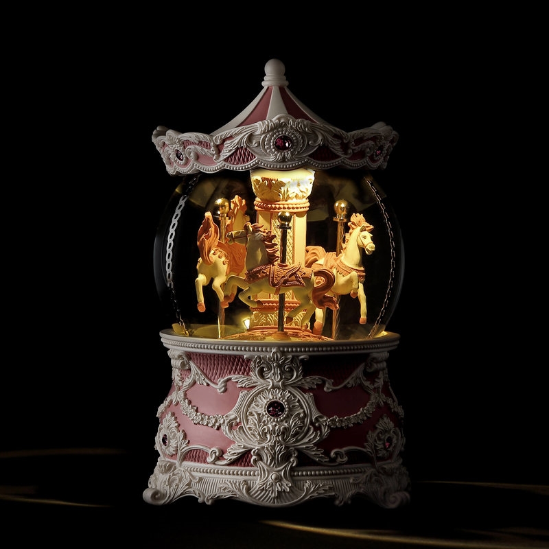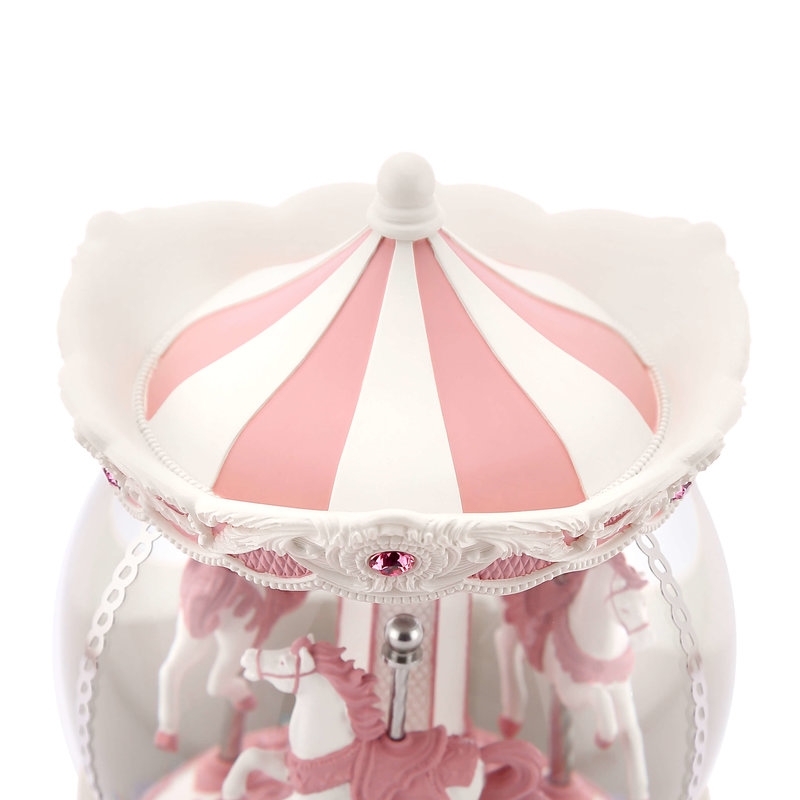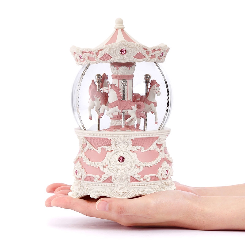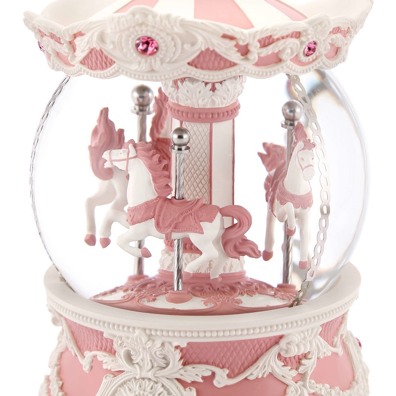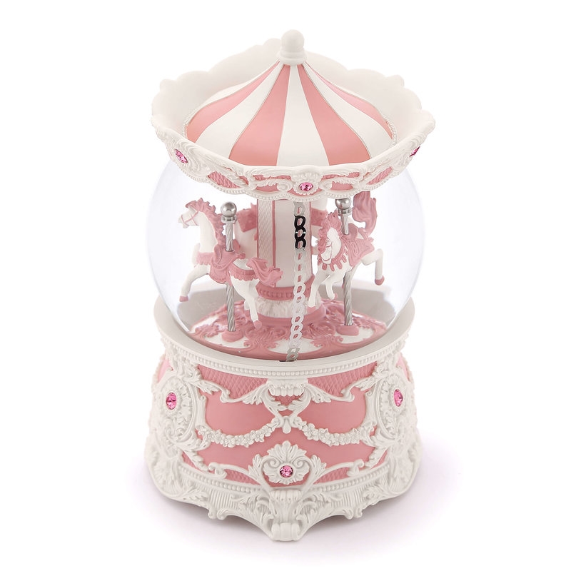 名稱: 胭脂粉紅 洛可可旋轉木馬(燈光) 水晶球音樂盒 情人禮物