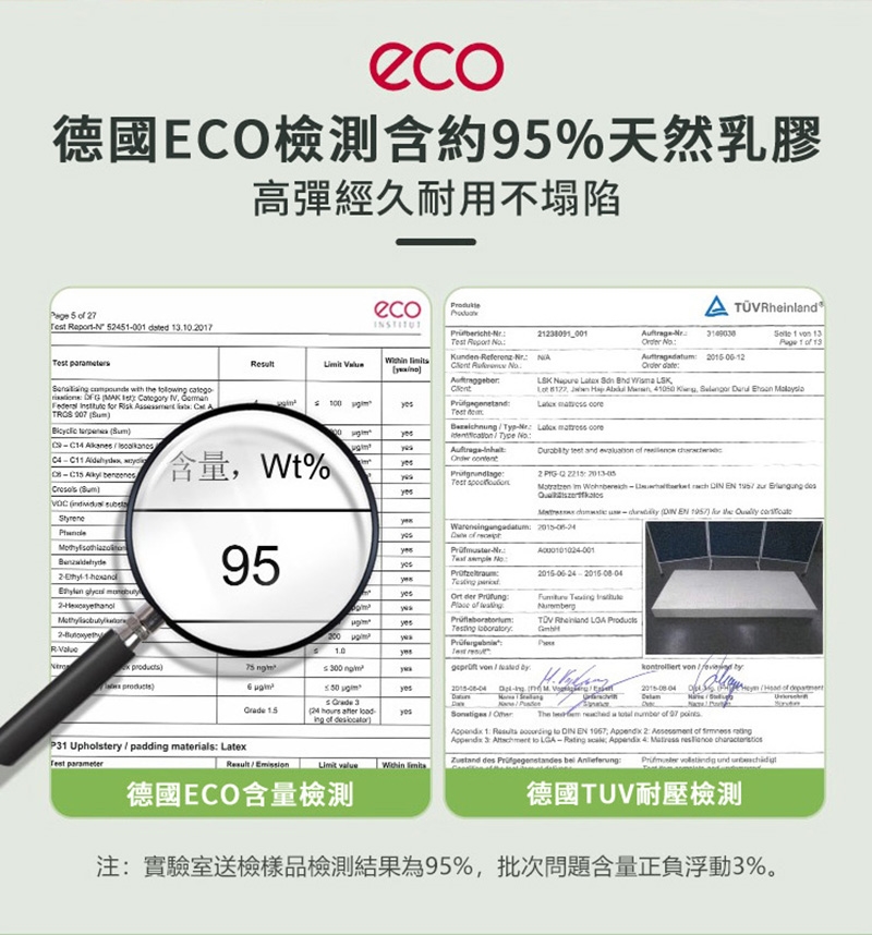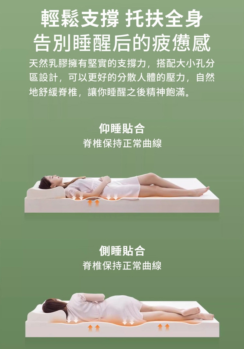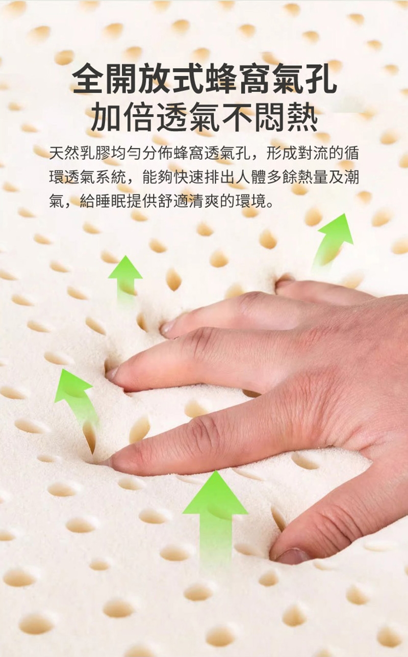選用馬來西亞乳膠,天然健康且帶有一股乳香味,可自然分解對環境無害。