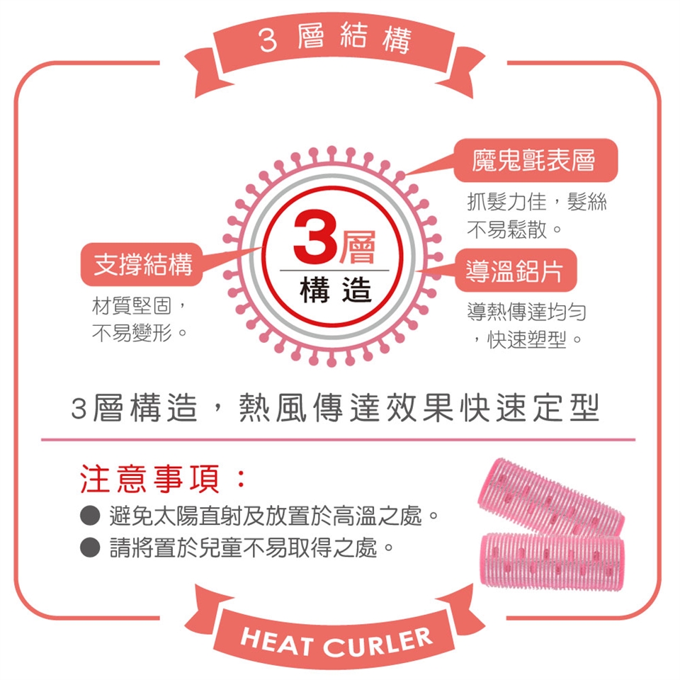 3層構造設計,加長型髮捲,捲髮定型一次搞定