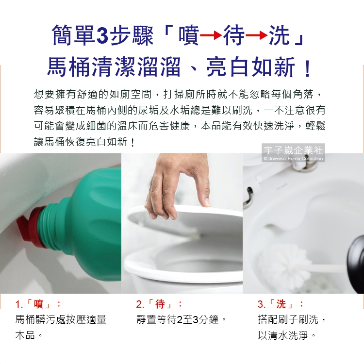 (3)噴灑出液體於馬桶後請務必清洗乾淨,不可置之不理。