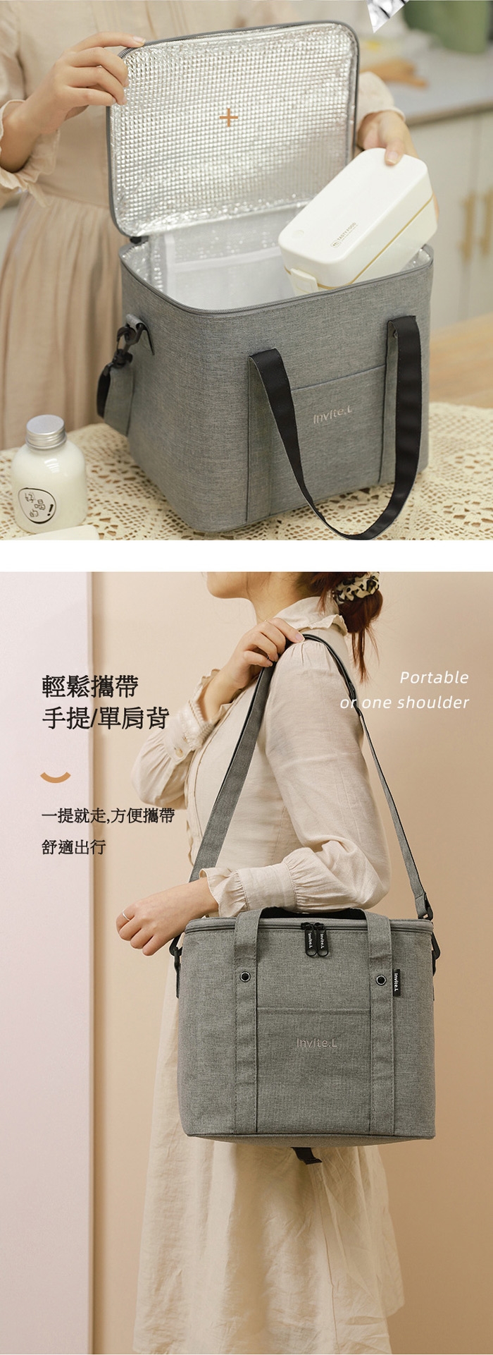 大容量空間,滿足日常出行所需,可拆卸肩帶,手提/單肩背,一提就走,方便攜帶