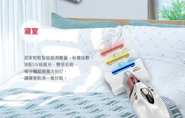 ◎UV除螨Plus,智能感測粉塵,以藍/橙黃/紅燈顯示,一目了然