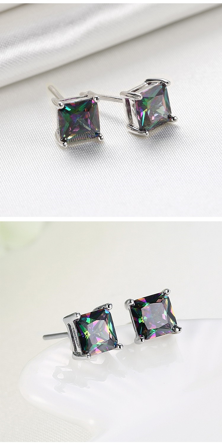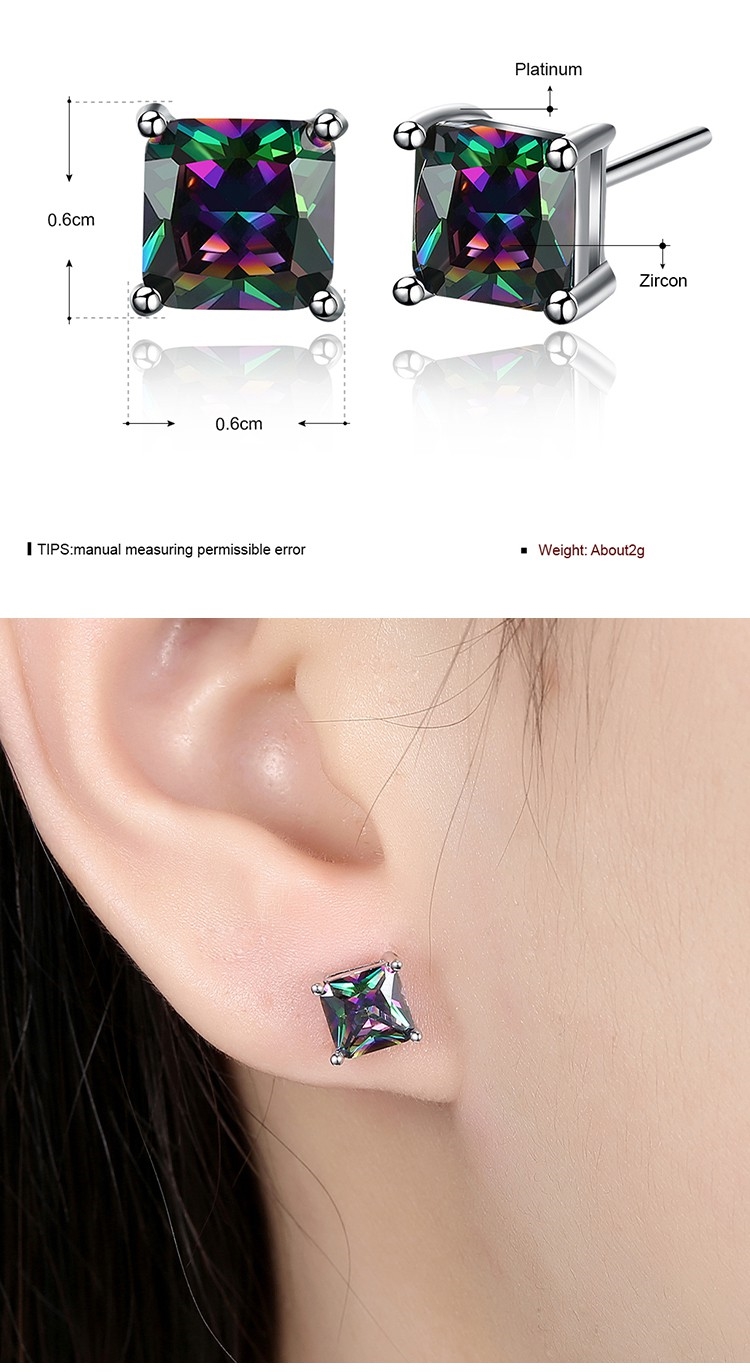 【Aphrodite 愛芙晶鑽】方形璀璨色彩鋯石造型耳環(白金色)