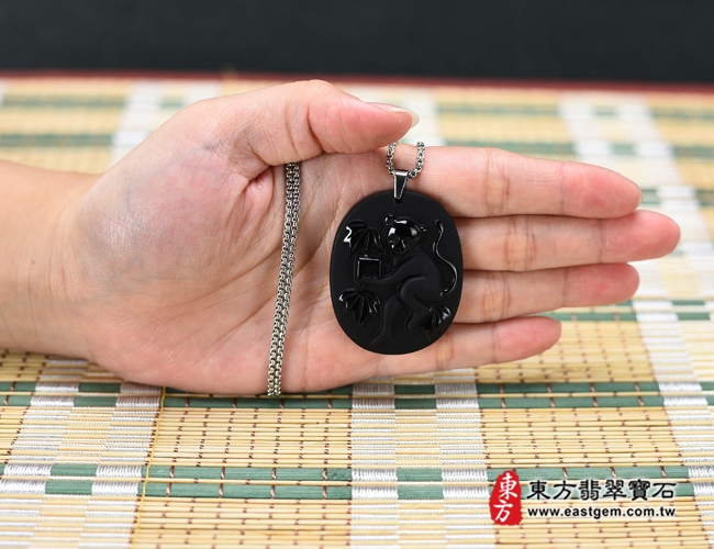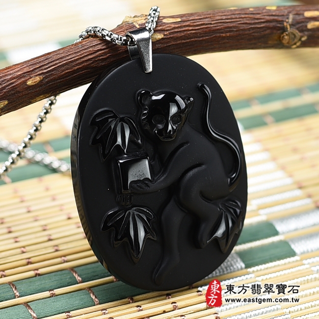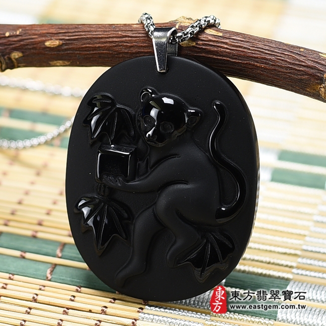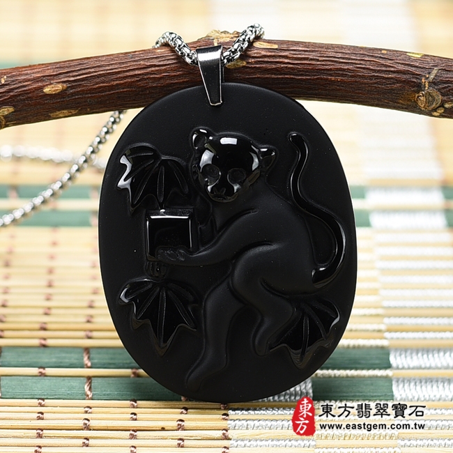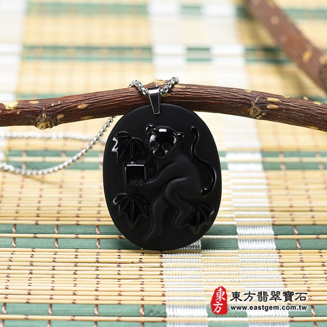 商品名稱:黑曜石猴項鍊玉珮(吉祥如意:猴牌黑曜石猴玉珮、黑曜石猴玉墜、猴十二生肖項鍊)。冰種黑曜石猴,HW077。客製化訂做各種黑曜石猴吊墜玉珮項鍊。★附東方翡翠寶石保證卡
