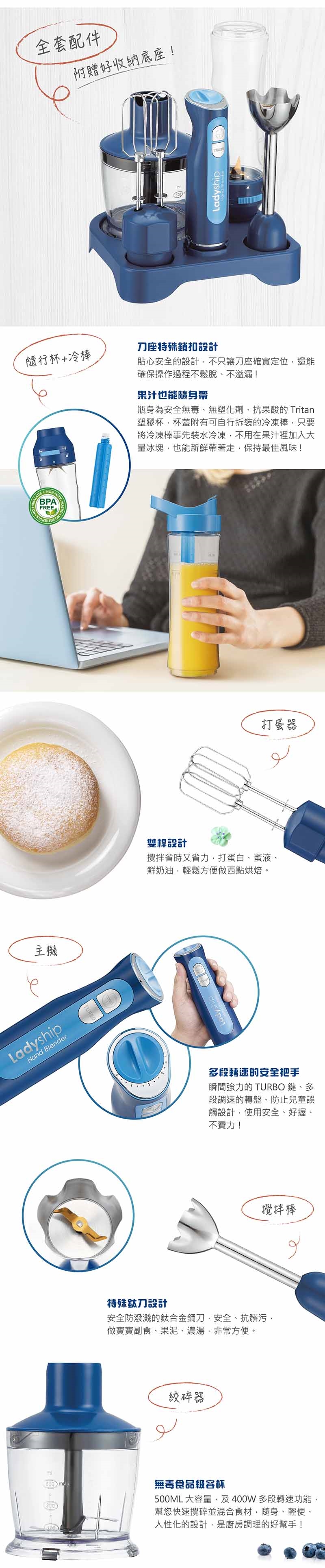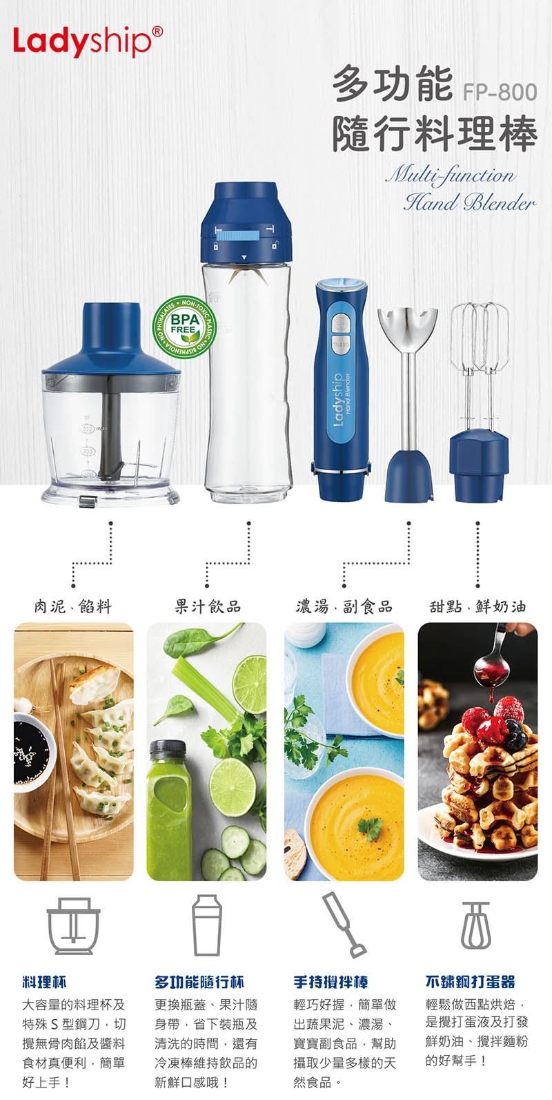 貴夫人 手持攪拌棒+隨行杯果汁機 FP-800