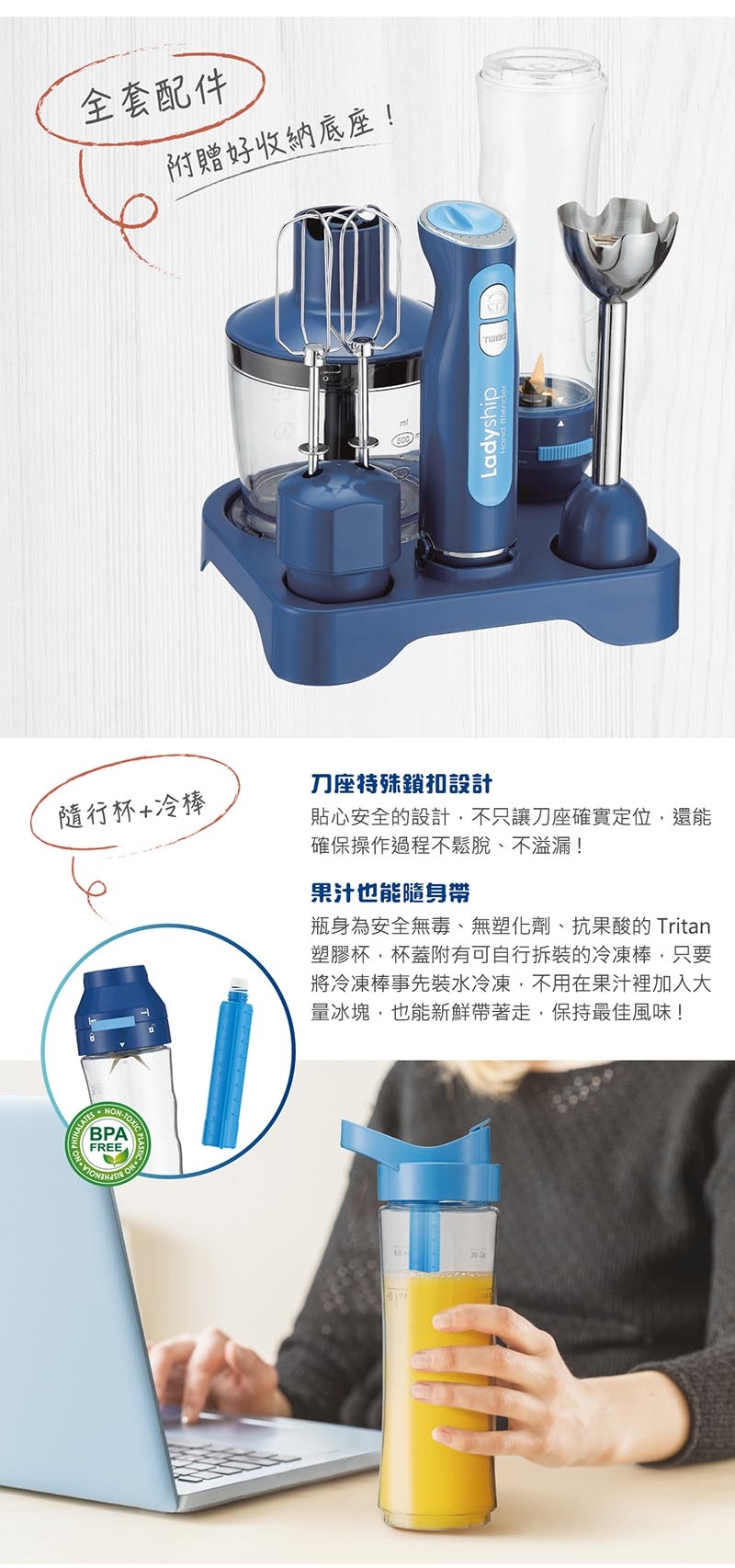 3.搭配果汁機隨身杯功能,附保冷棒